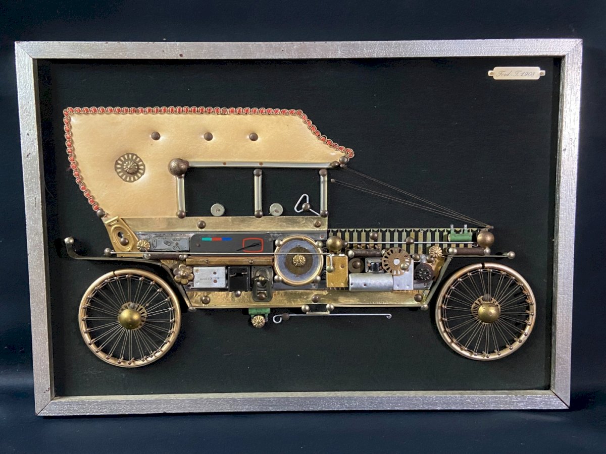 Art d'assemblage "Junk Art" à partir d'éléments matériaux industriels Ford T