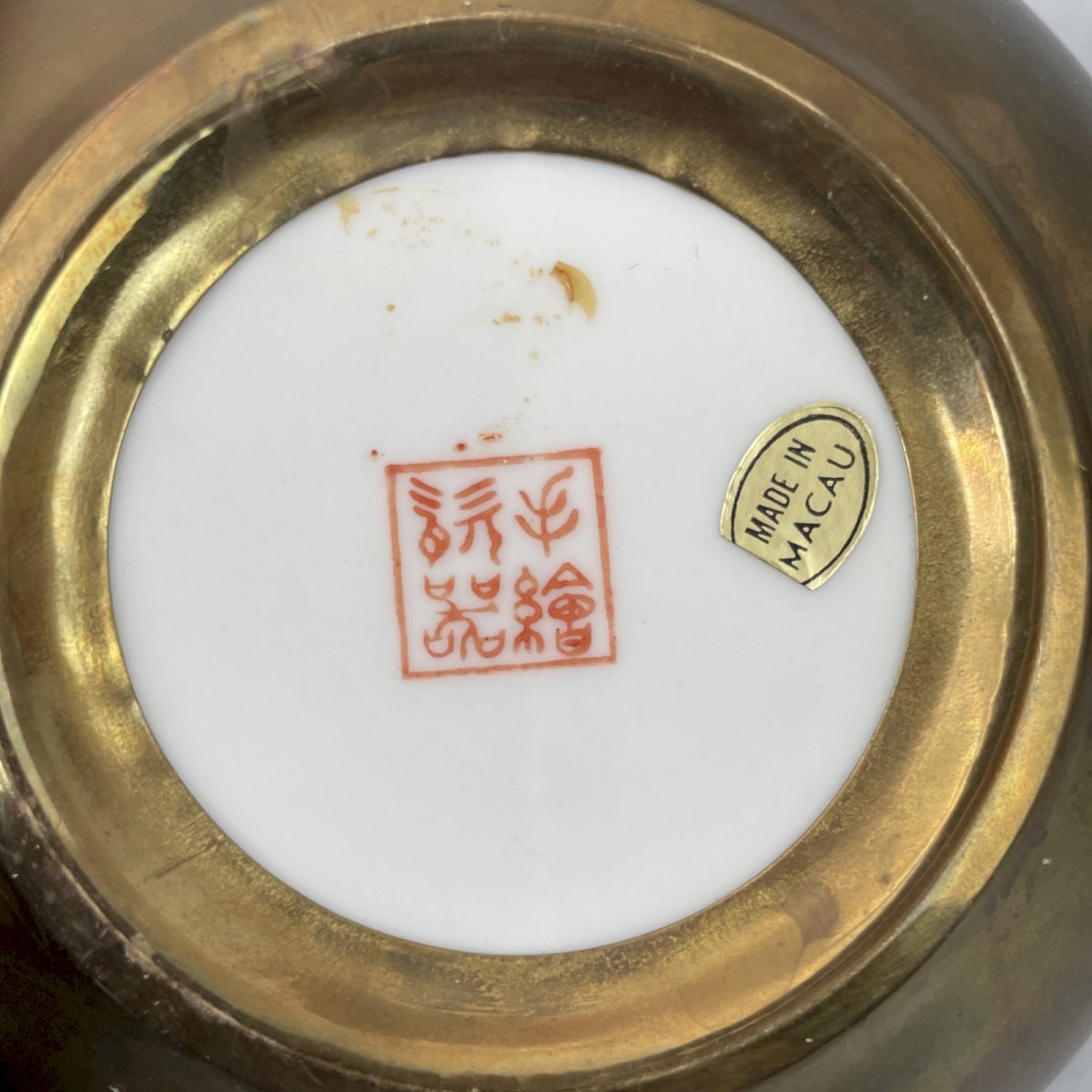 ASIE CHINE MACAO petite assiette porcelaine chinoise et laiton décor floral arum