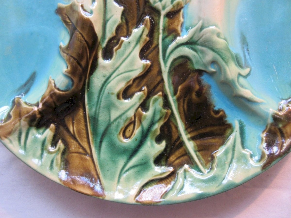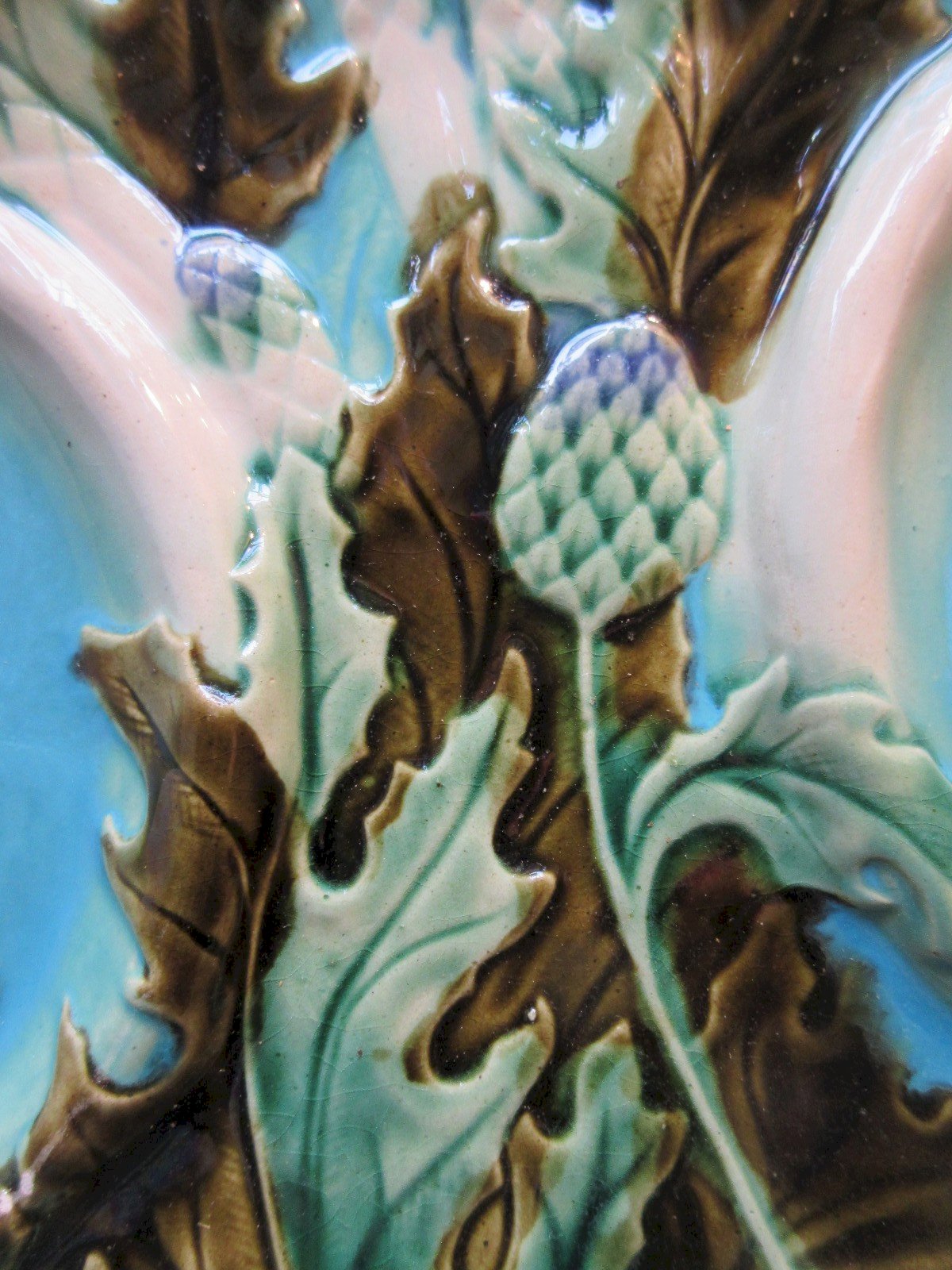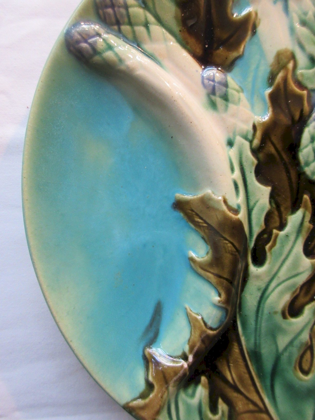 Assiette à asperges en barbotine Salins les Bains, asperges et artichauts