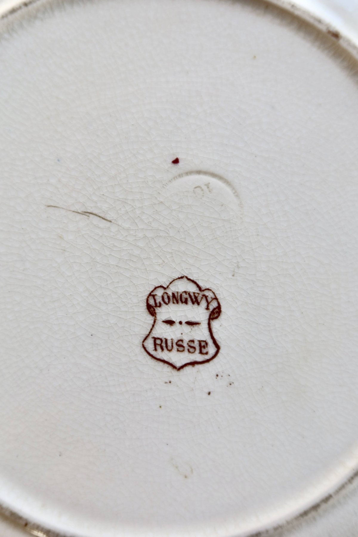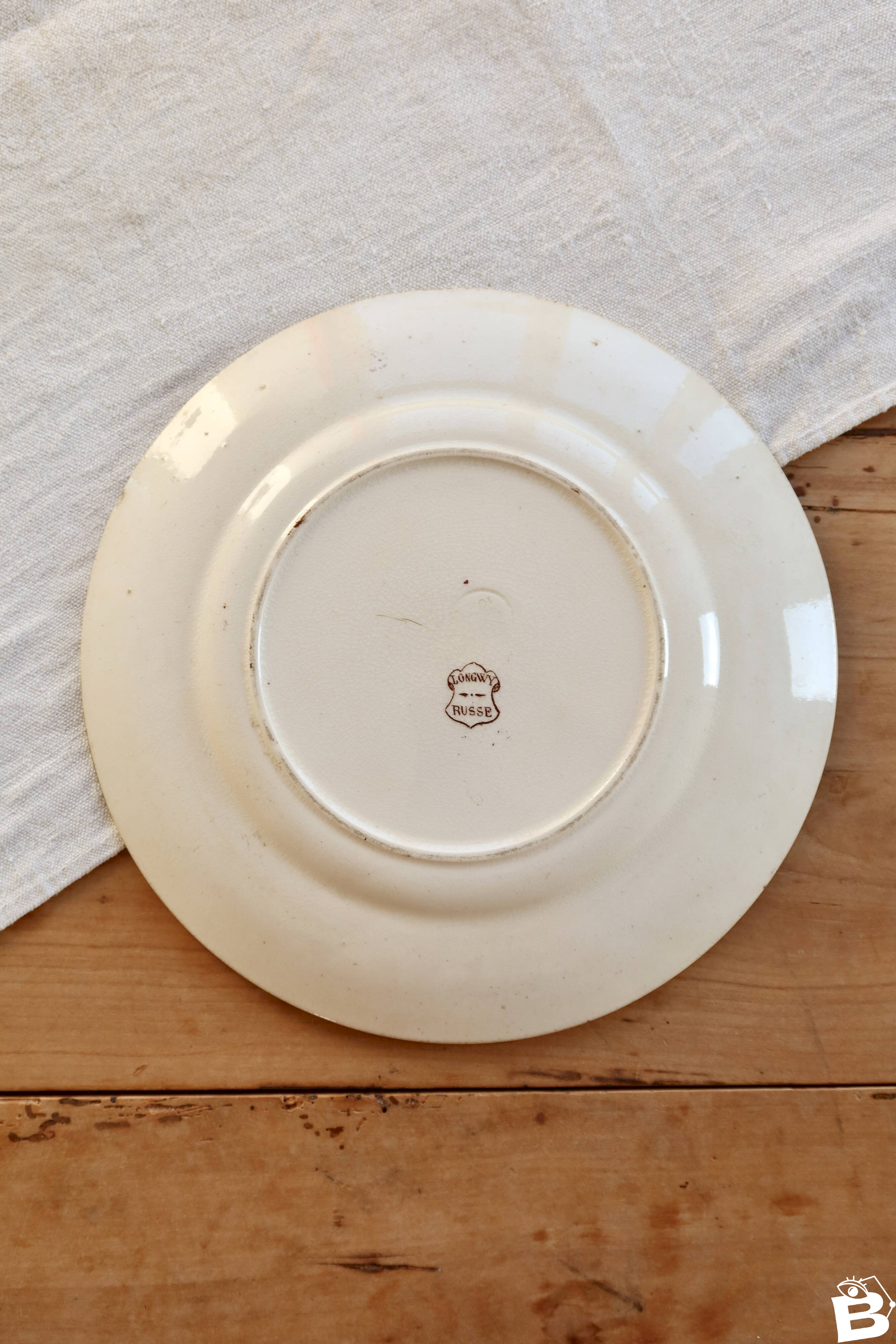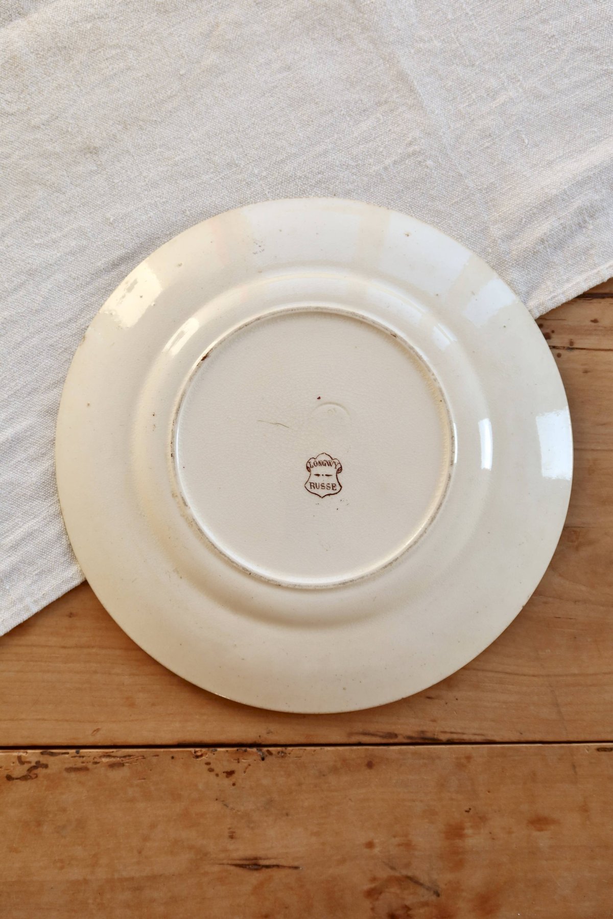 Assiette à dessert ancienne terre de fer Longwy Russe - Décor sépia