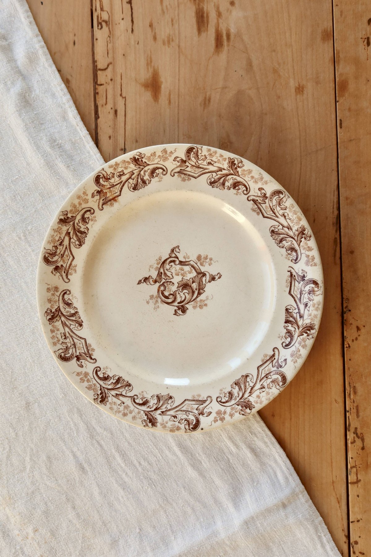 Ancienne Assiette Plate Terre De Fer HB & Cie/Art De La Table /décor Sépia