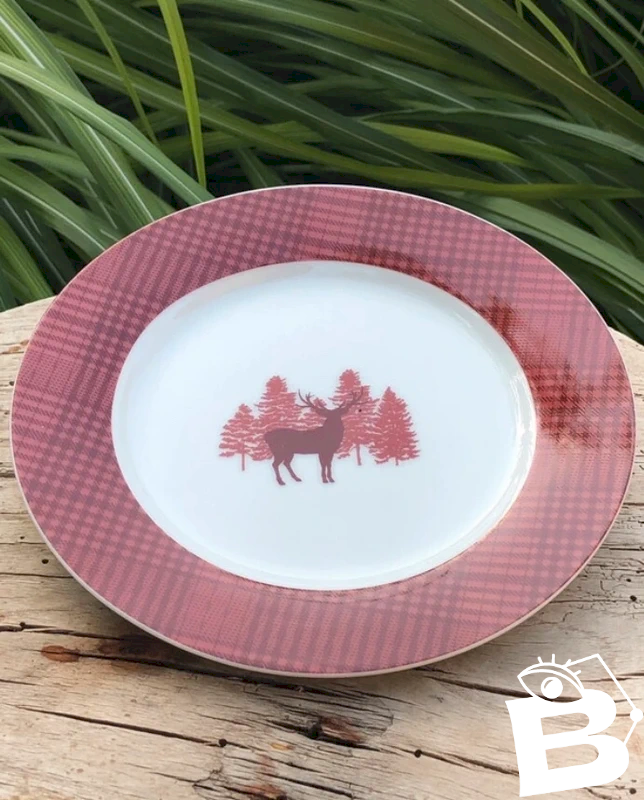 Assiette à dessert en porcelaine blanche et bordeaux au décor de Noël