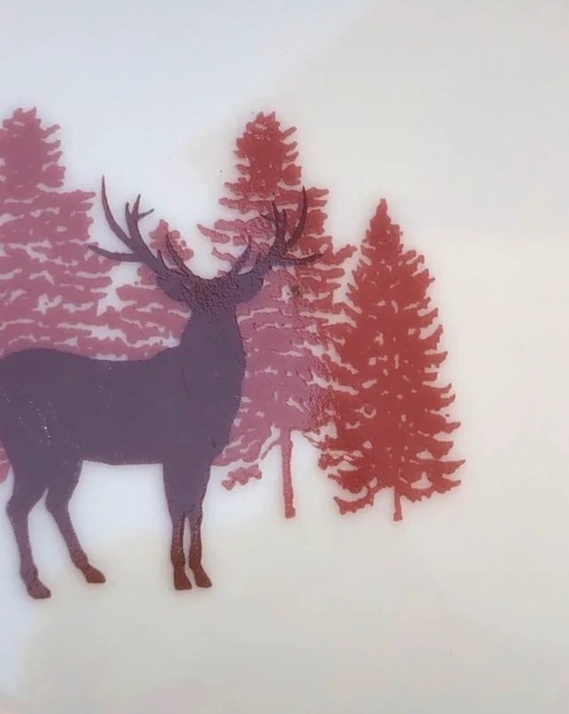 Assiette à dessert en porcelaine blanche et bordeaux aux décor de Noël en excellent état Diamètre 19 cm