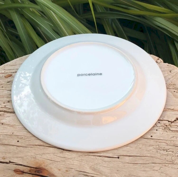 4 assiettes à Fromage / Dessert Porcelaine blanche décor floral Arpo Made in Romania