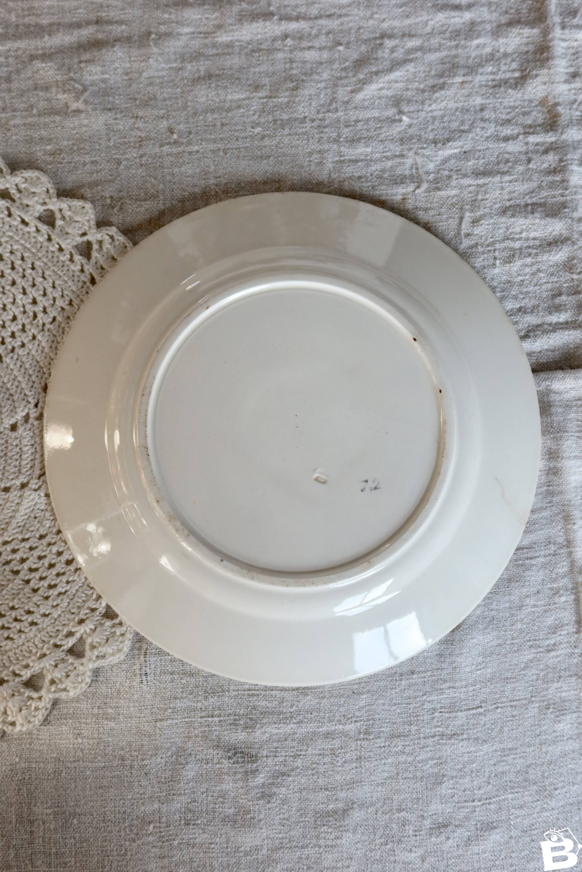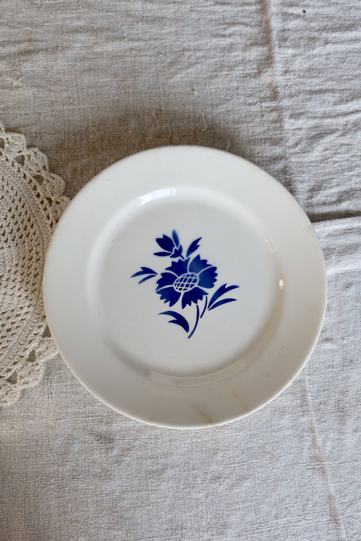 Assiette à dessert vintage en faïence ivoire – Décor fleur bleue Céramique