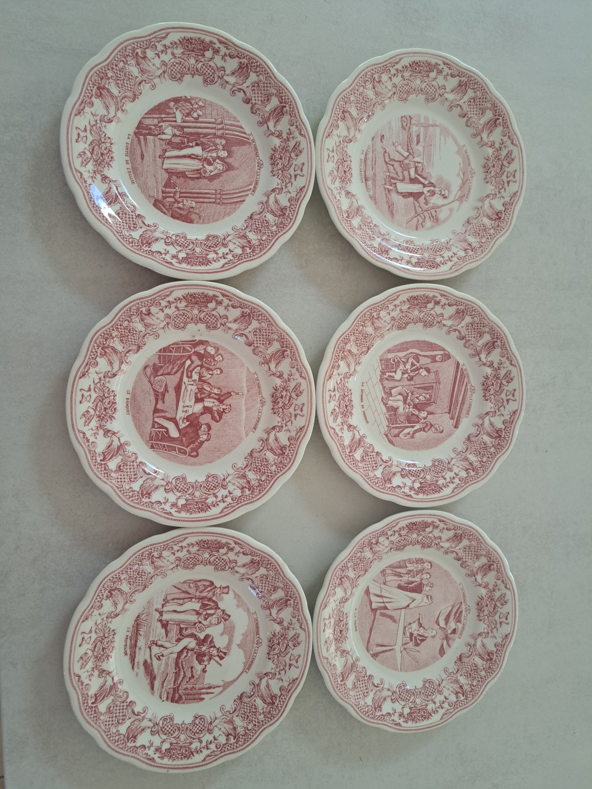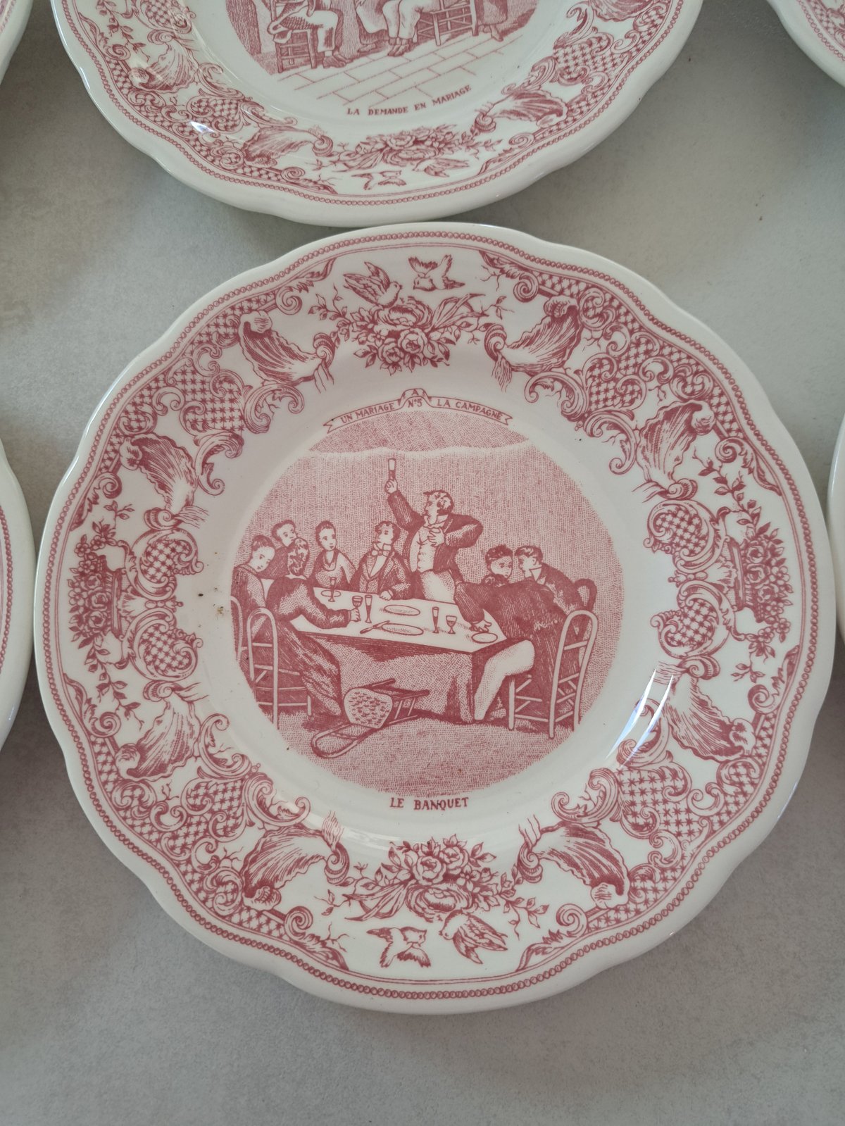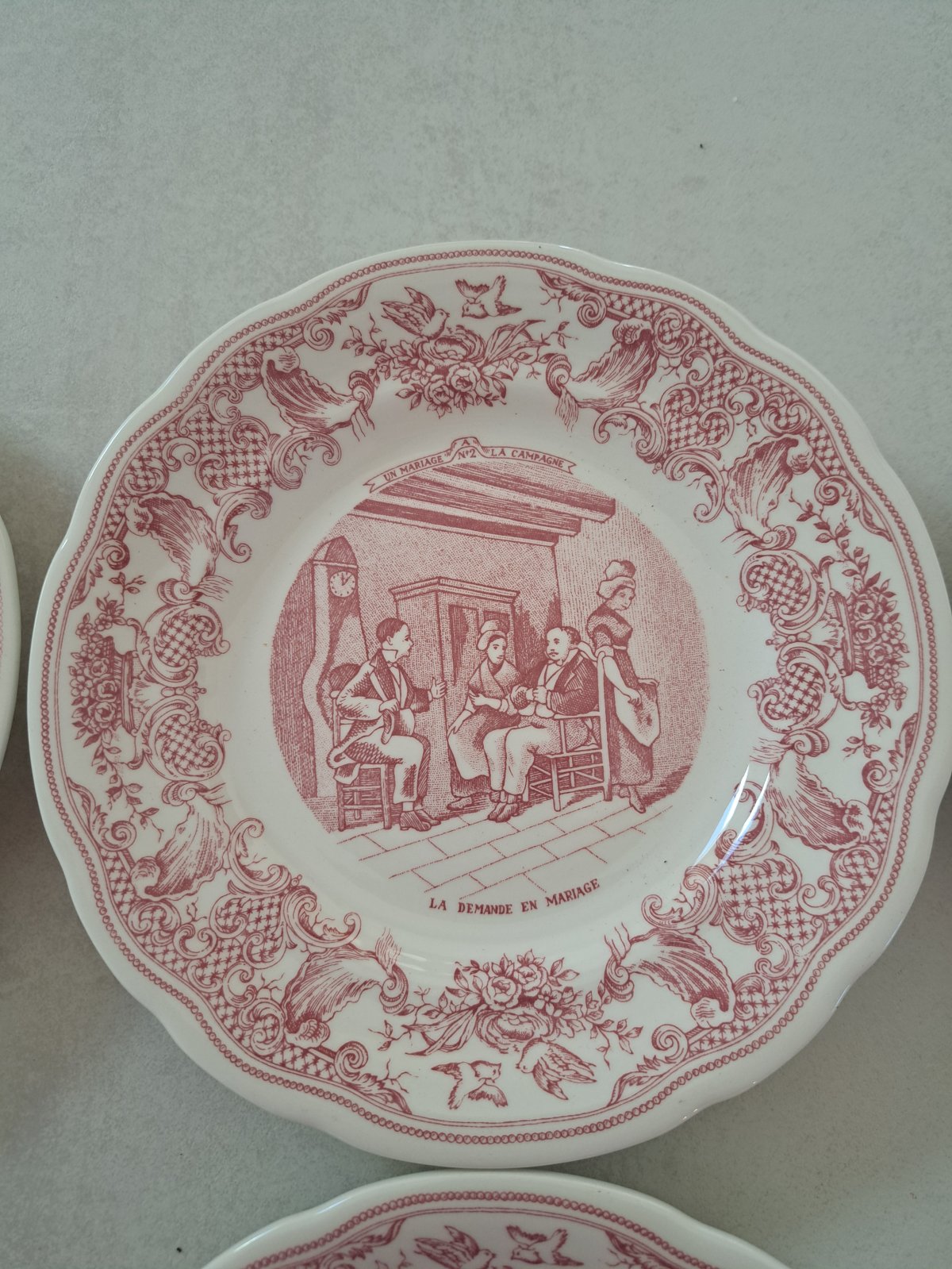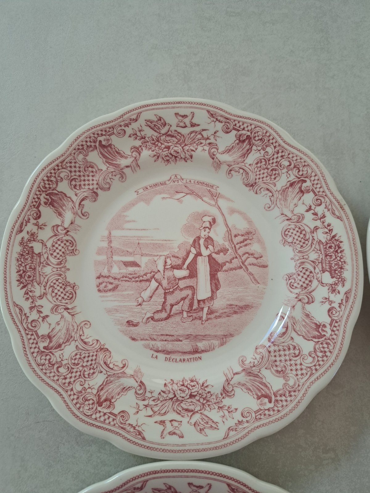Assiette ancienne Blanc/Rouge Faïence Illustration Gien