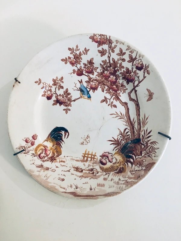 Je peux diminuer les frais de port ✨ Assiette ancienne Digoin Sarreguemines Motifs coqs et oiseau Diamètre 18 cm Signes du temps , craquelure de l’email au centre , fêlure non traversante Bien conservée Pour deux articles achetés dans mon dressing, le troisième est offert ☺️( le moins cher des trois …) Me contacter pour l’achat d’un lot Réduction de frais de port possible pour les vases,les assiettes, les bols #retro #vintage #vaissellevintage #vaisselleancienne #vaisselleanglaise #artdeco #annees70 #boheme