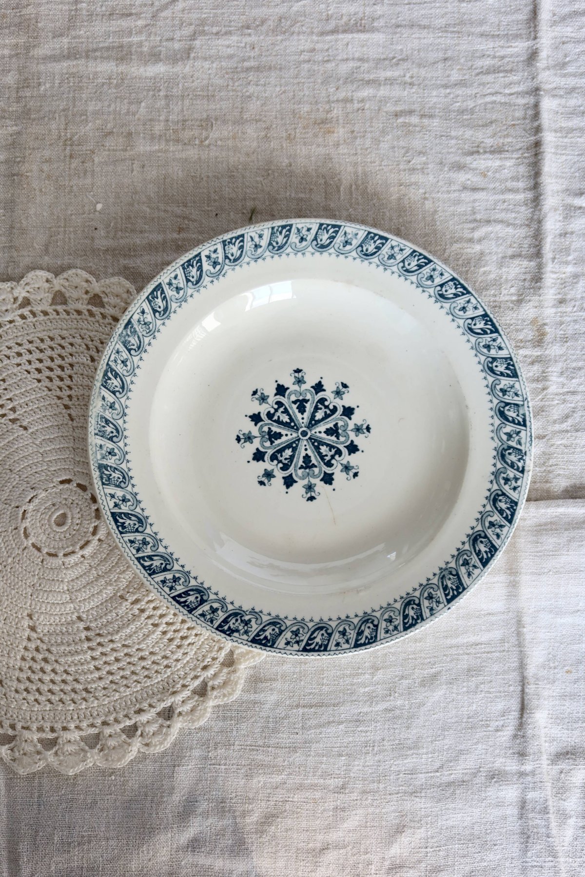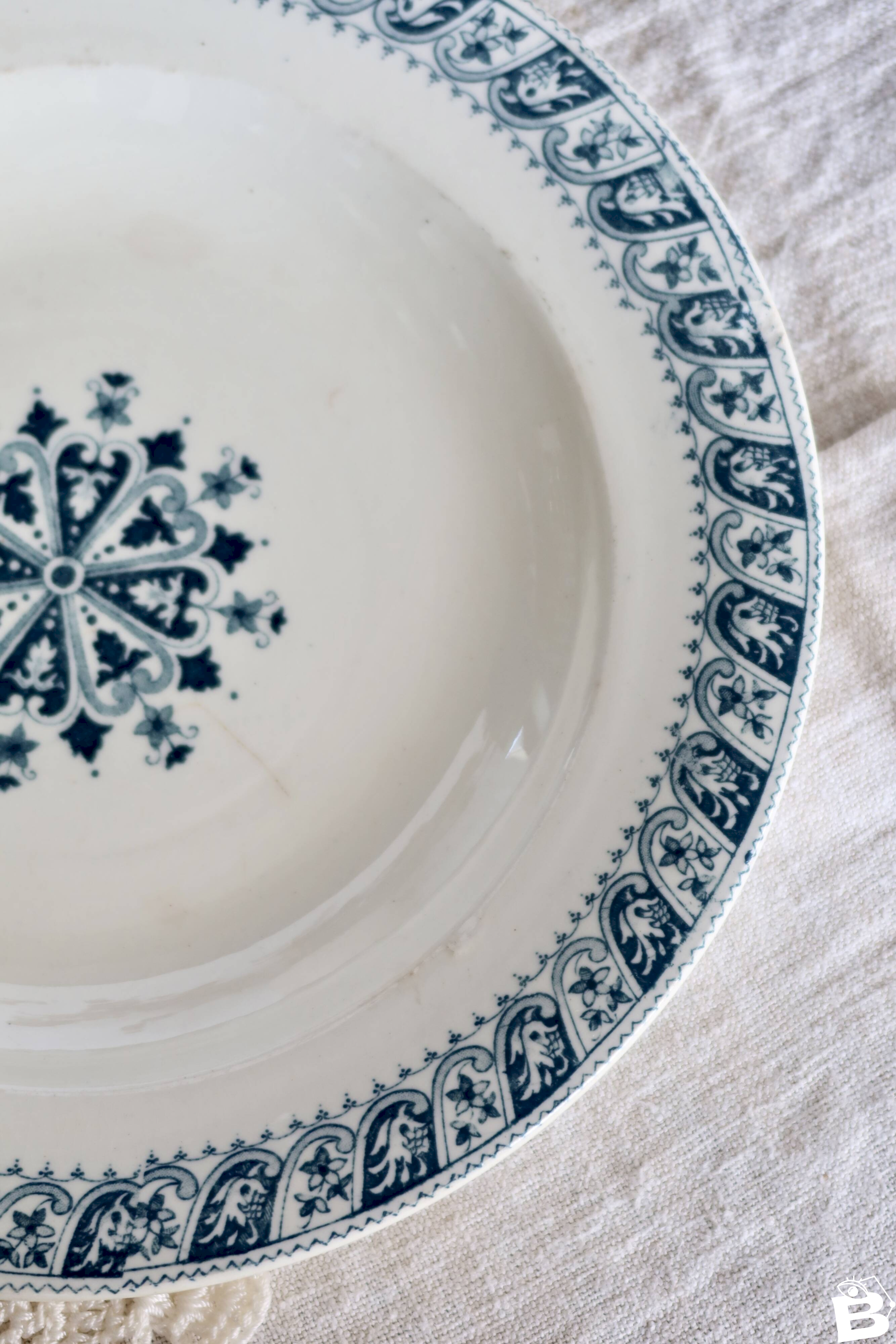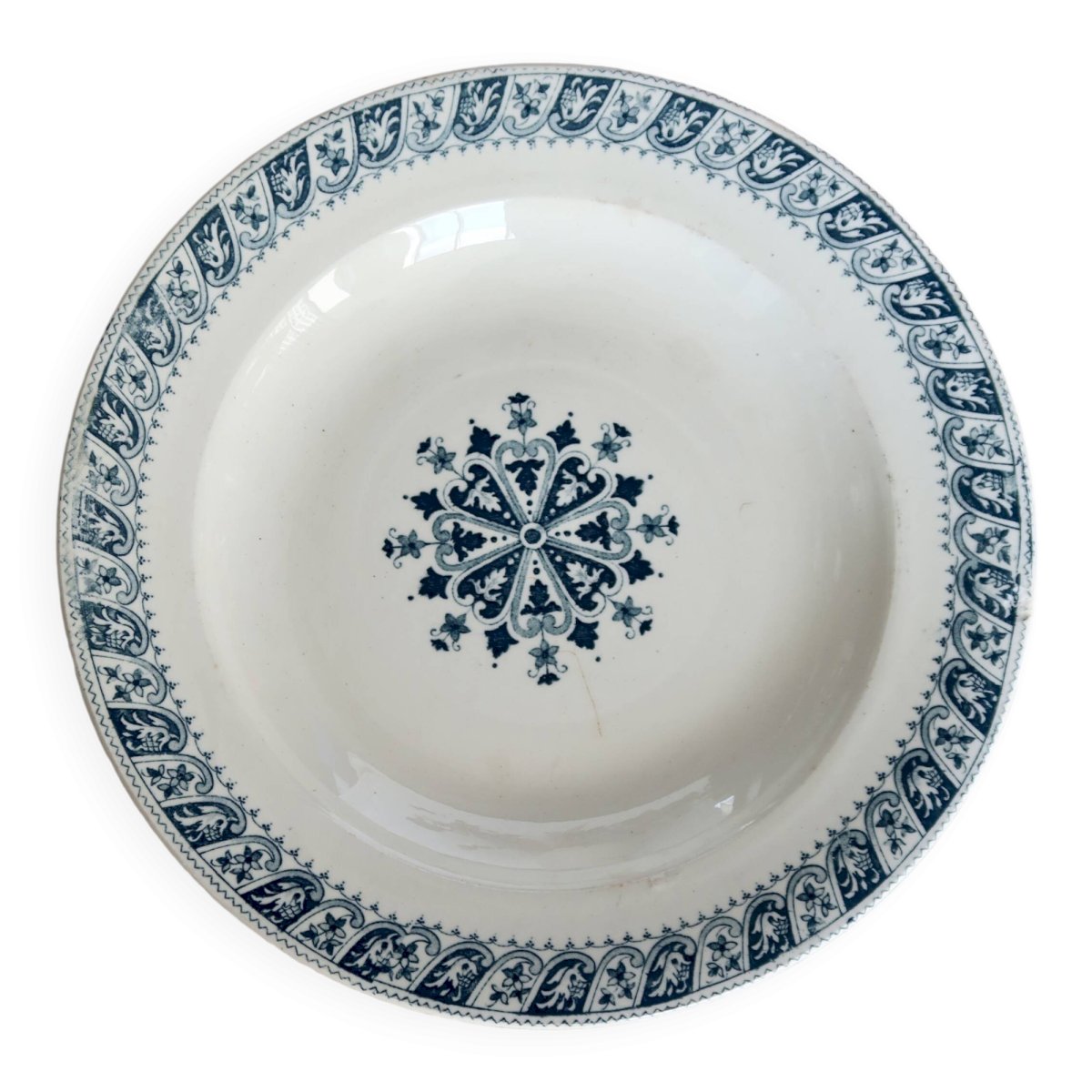 Assiette ancienne semi-creuse terre de fer – Salins modèle Henri II Bleu Céramique