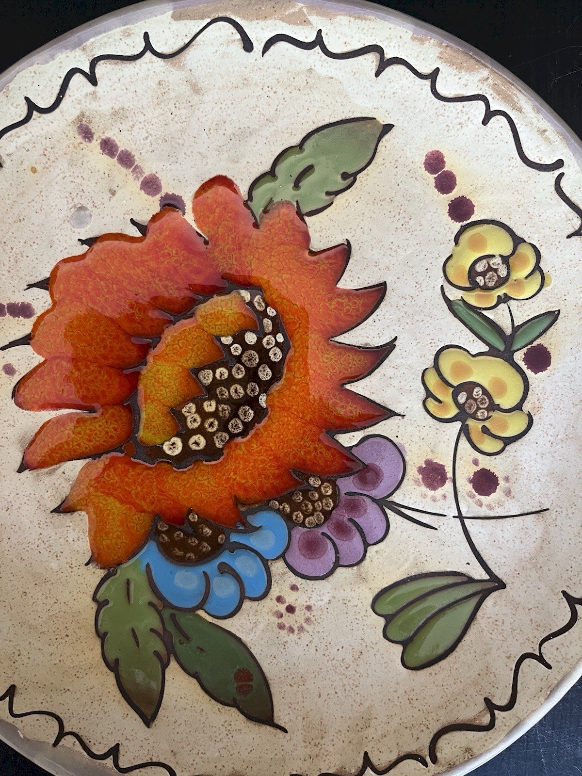 assiette artisanale décor de fleurs vintage déco fait main piece unique Francis