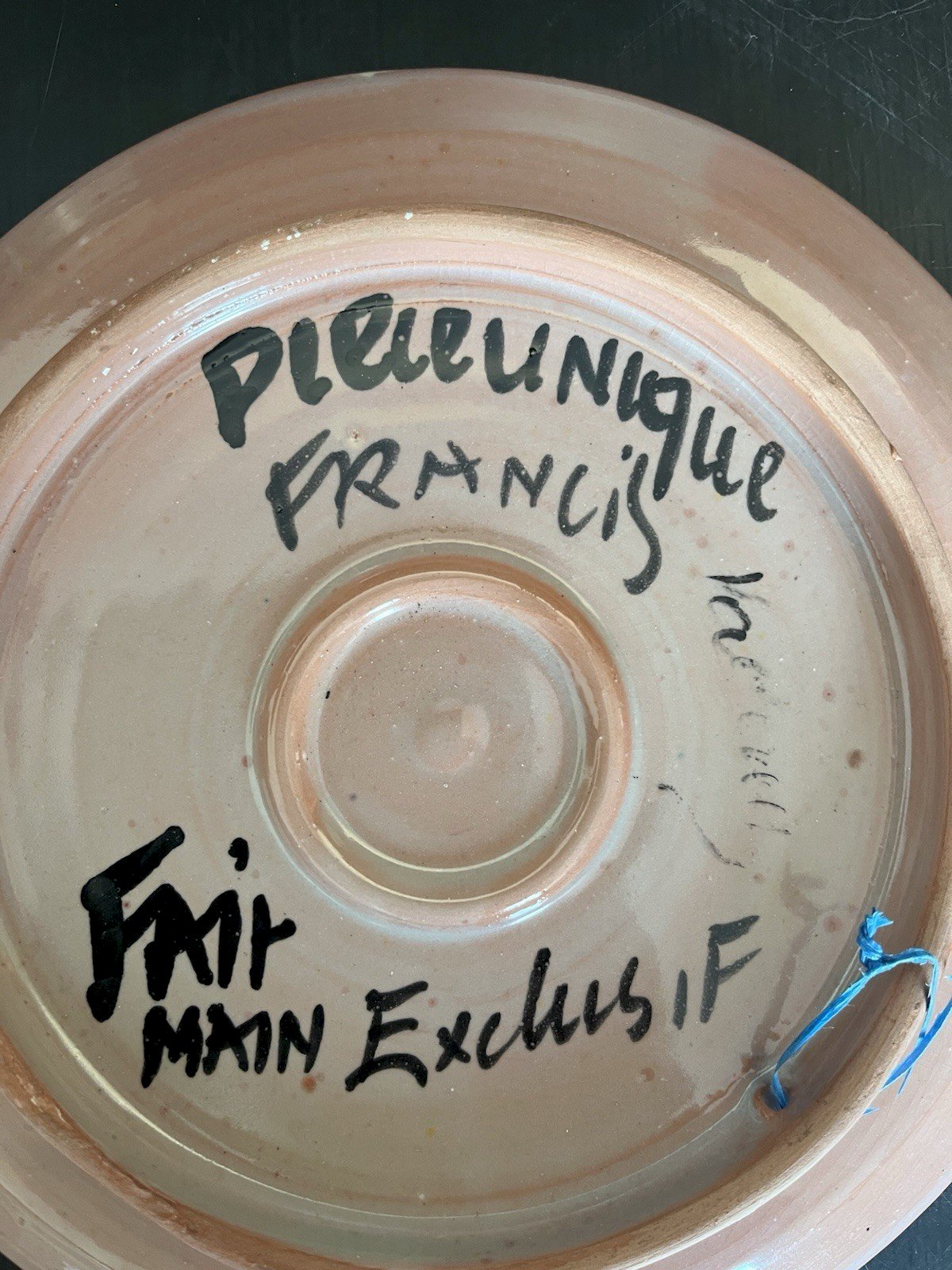 assiette decorative décor de fleurs marque Francis piece unique certainement Vallauris  bon état  diam 26 cm haut 3.50 cm poids 650 gr  Regardez les photos ci-dessus qui auront également valeur de descriptif. Emballage soigné et sécurisé par Mondial Relay ou avec la poste à choisir lors de votre achat. merci à tous et bonne chine dans ma boutique. renvoi accepté  dans 1 délai de 14 jours à partir de la réception, retour dans son emballage d'origine, dans son état initial,pas de remboursement pour les objets retournés cassés ou perdus par le transporteur,retour à la charge de l'acheteur . N'hesitez pas à mettre ma boutique dans vos favoris ! Pays d'origine:France métropolitaine