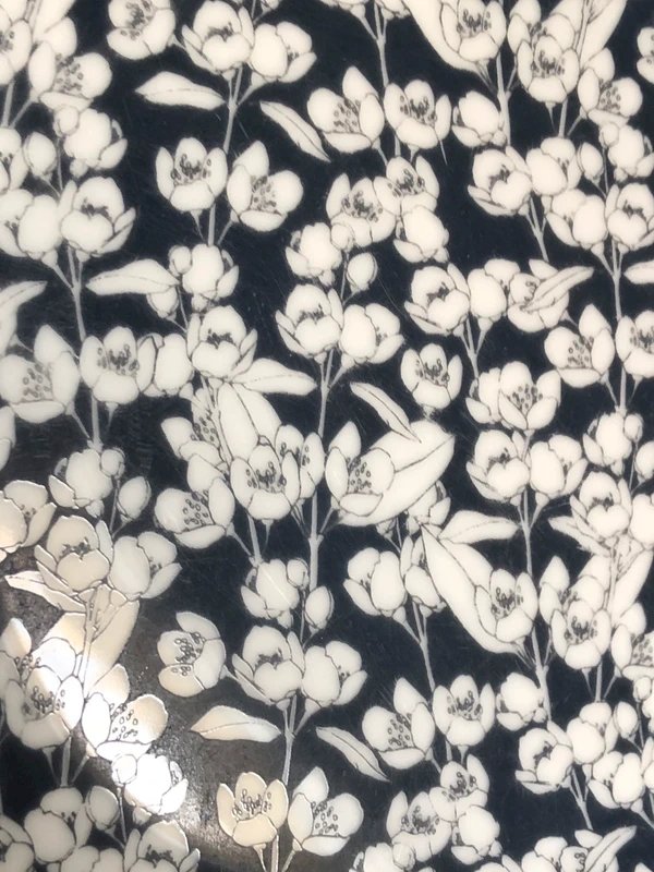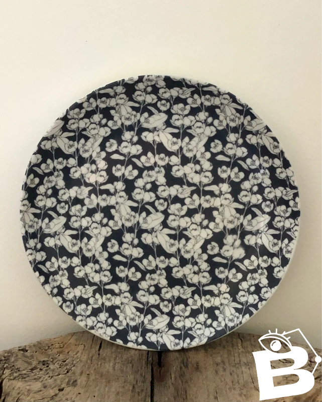 Assiette bleu marine motifs fleurs blanches Porcelaine