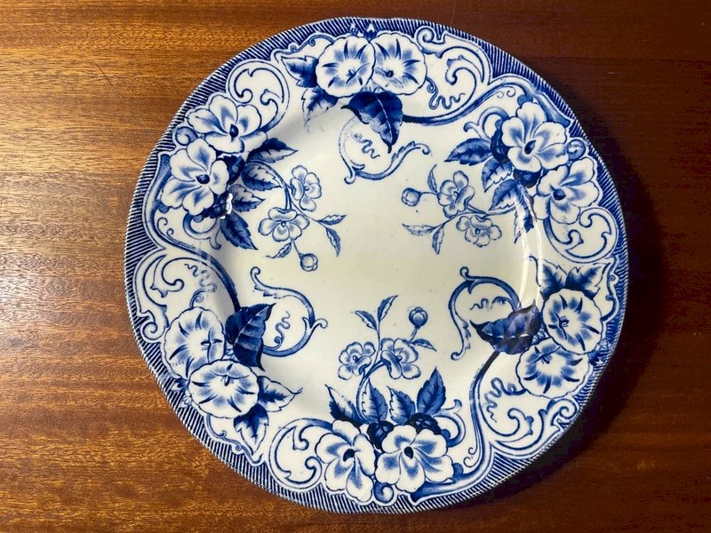 Superbe assiette de la faïencerie Creil et Montereau modèle « Flora » Bleu cyan Très bon état un petit manque dessous qui ne se voit pas ni du dessus ni de profil Diamètre 22,7cm ? Me contacter pour baisser les frais d’envoi ?...