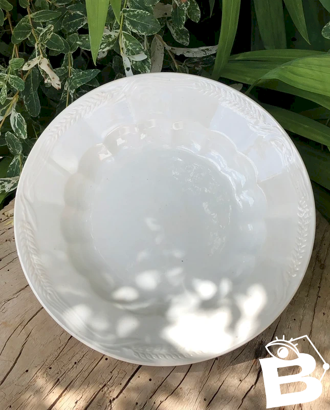 Assiette creuse blanche L Amandinoise en très bon état général , quelques traces du temps mais ni brèche ni fêlure Très élégante Diamètre 23,2 cm Frais de port à réajuster à la vente , petit format suffisant...