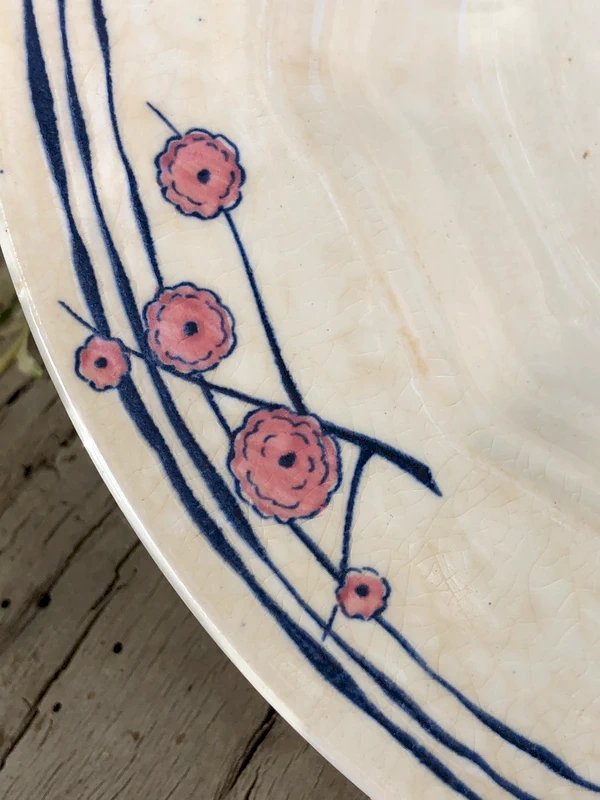 Assiette creuse centenaire HBCM modèle Prunella en bon état général de conservation , ni brèche ni fêlure , craquelée et tachée de façon régulière , mais non fragilisée Voir les photos Très jolie pièce Diamètre 23,5 cm Frais de port à réajuster à la vente , petit format suffisant