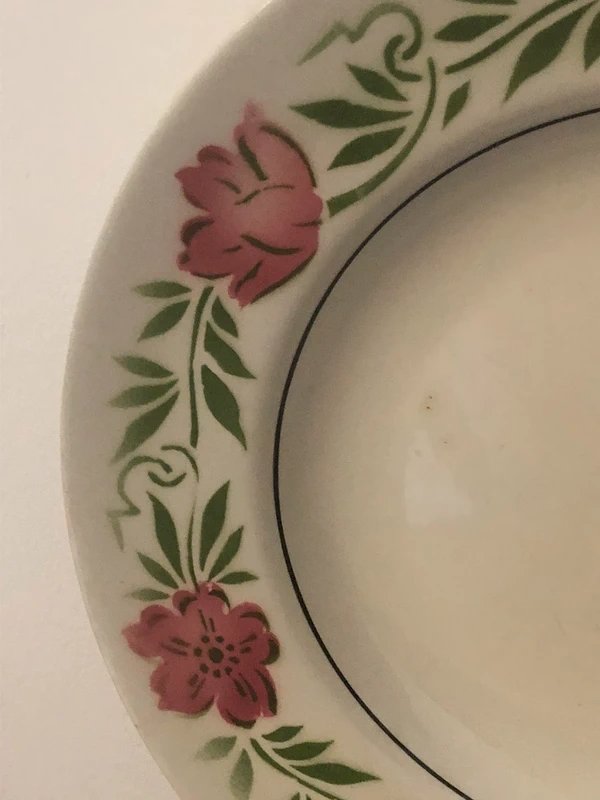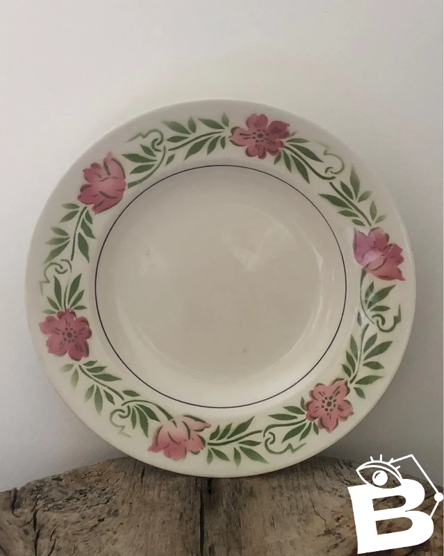 Assiette creuse vintage Moulin des Loups Blanc/Rose