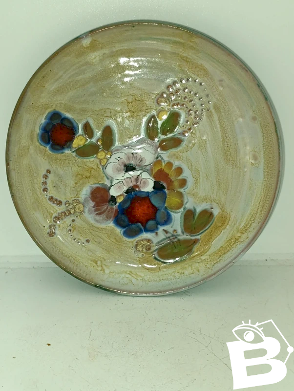 Assiette décorative en faïence peinte et émaillée de fleurs fait main signé Francis Ã