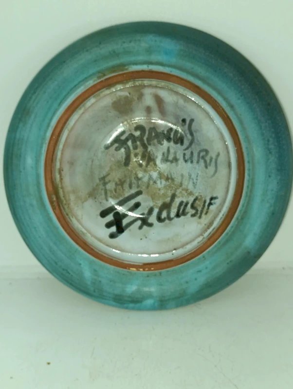 Assiette décorative en faïence peinte et émaillée de fleurs fait main signé Francis à Vallauris en bon etat une ou deux petites egrenures en dessous diametre 19.5cm...