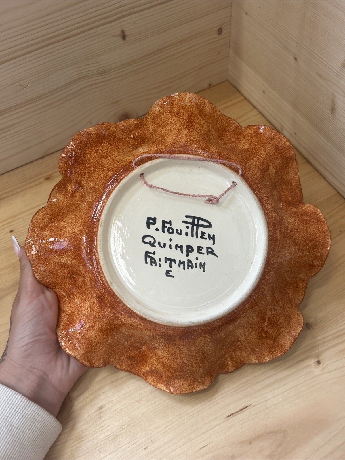 Assiette décorative signée Fouillen Quimper – faïence bretonne – 24 cm