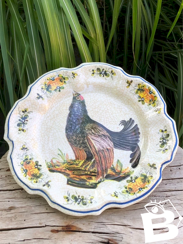 assiette décorative à décor de feuillage artisanale Corse Calvi vintage art