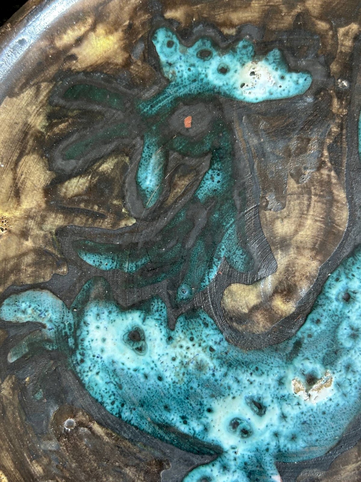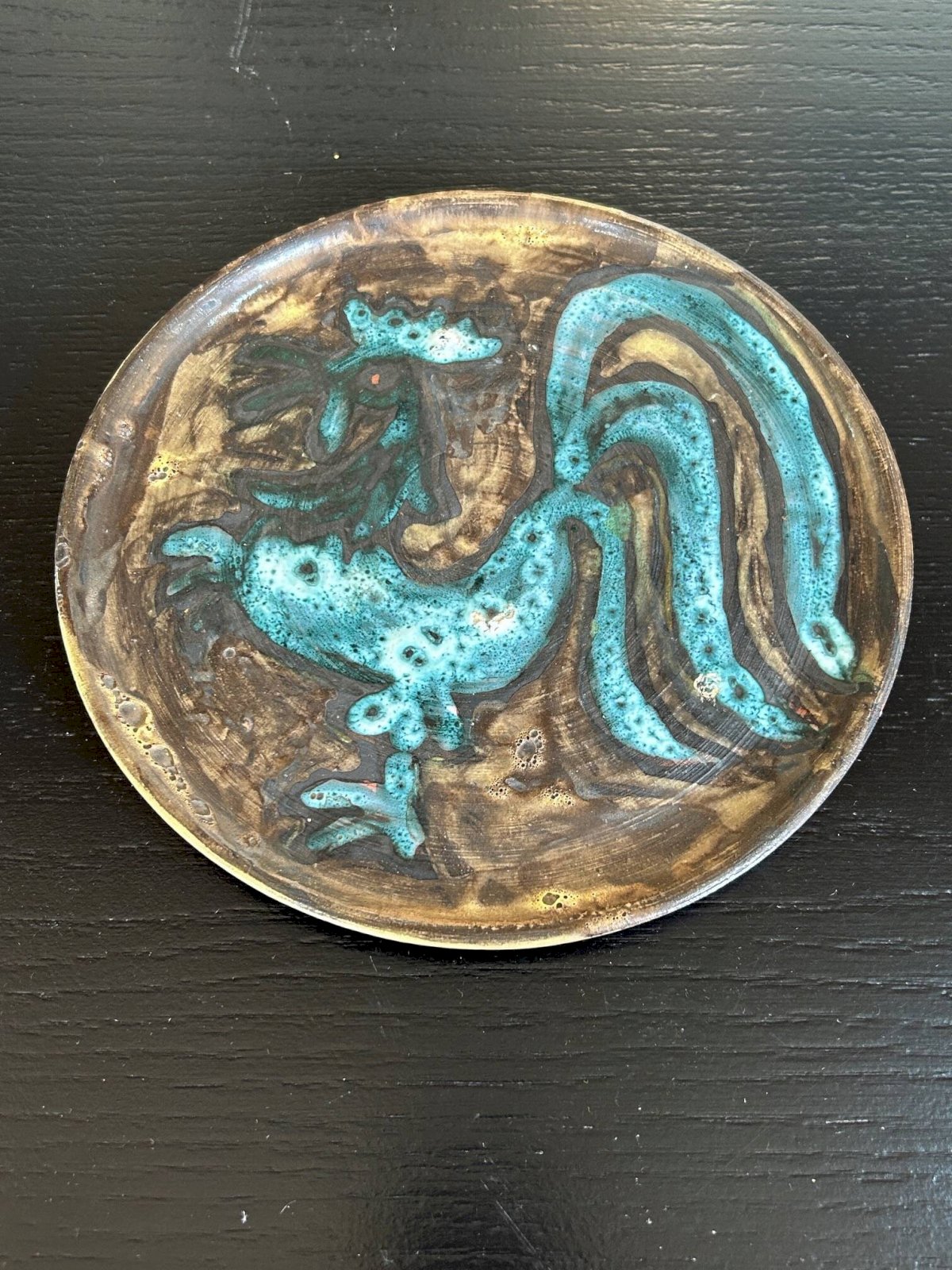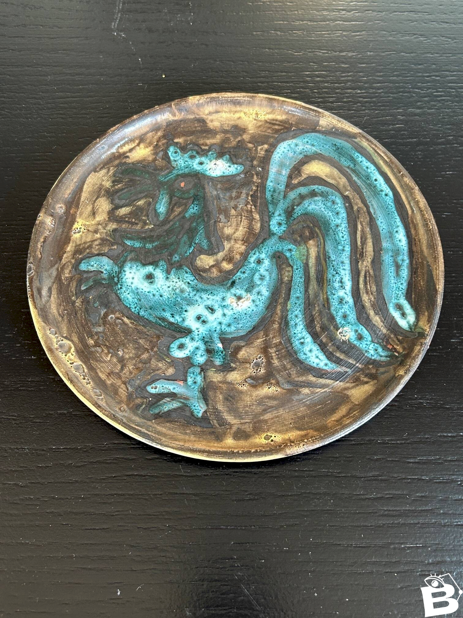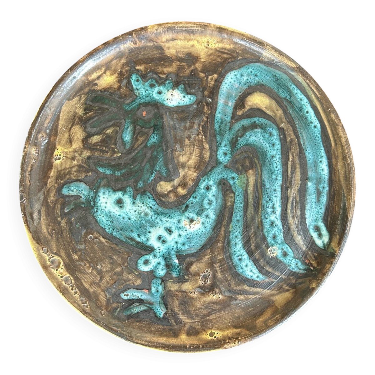 Assiette à décor de coq des années 60 par Jean Busson, Dinan.