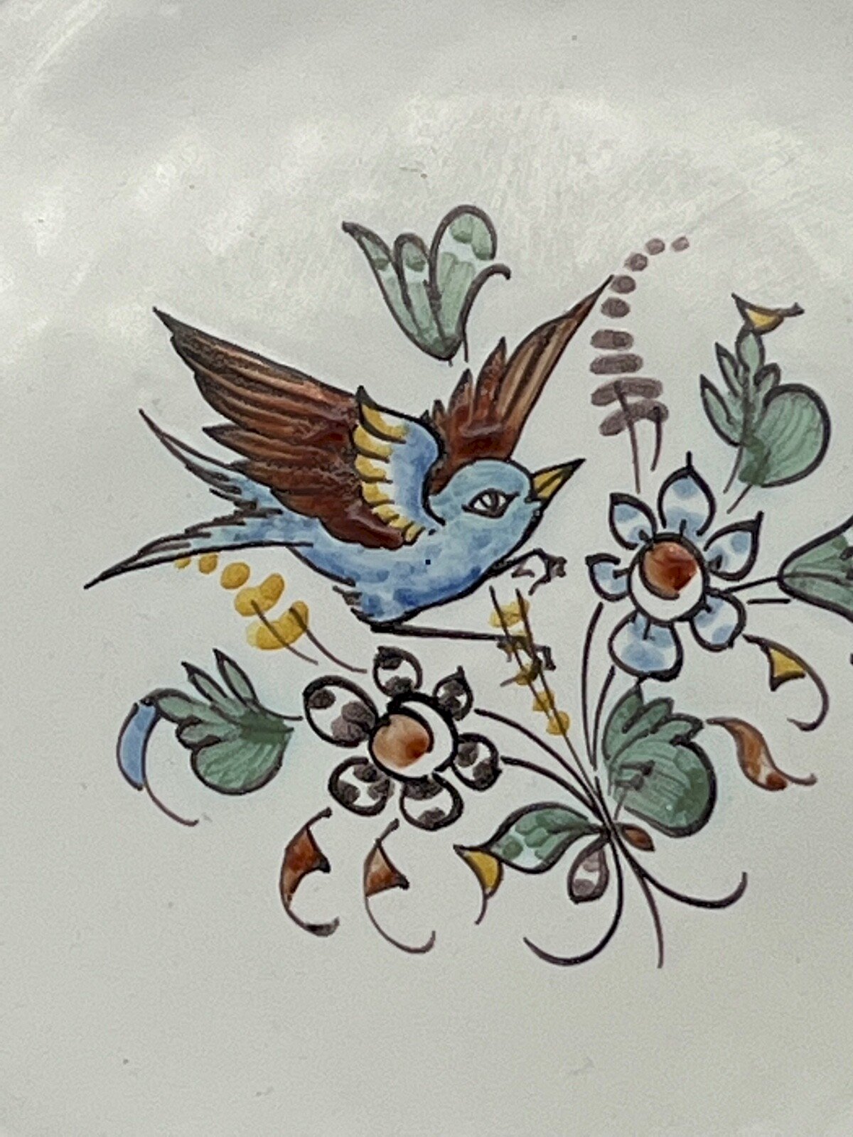 Assiette Nevers faïence XIXe décor oiseau fleurs ancien bleu manganèse antique