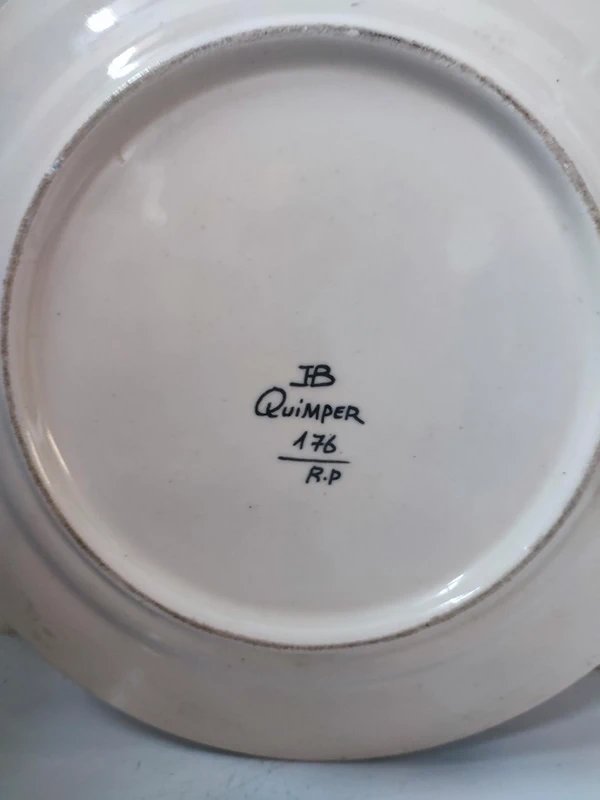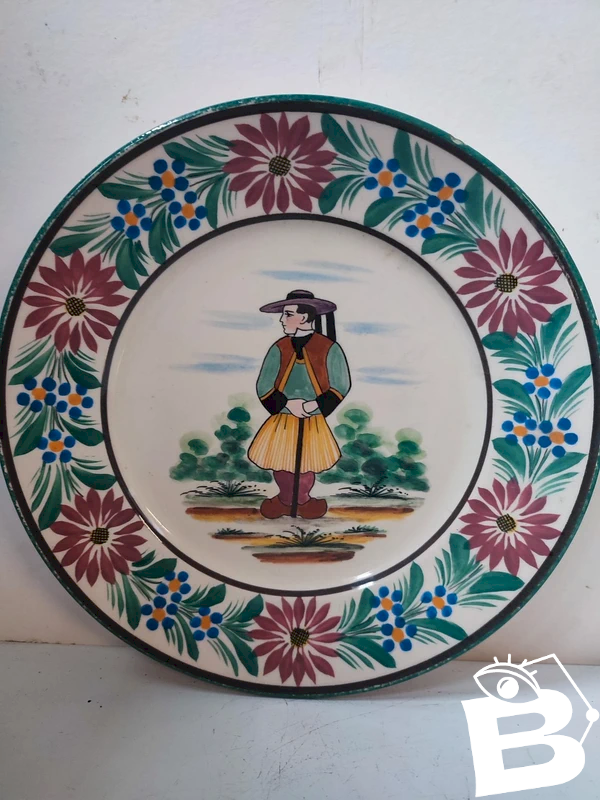 assiette signée HB quimper à decor de personnage en bon etat Petites egrenures autour voir photo diametre 24cm...