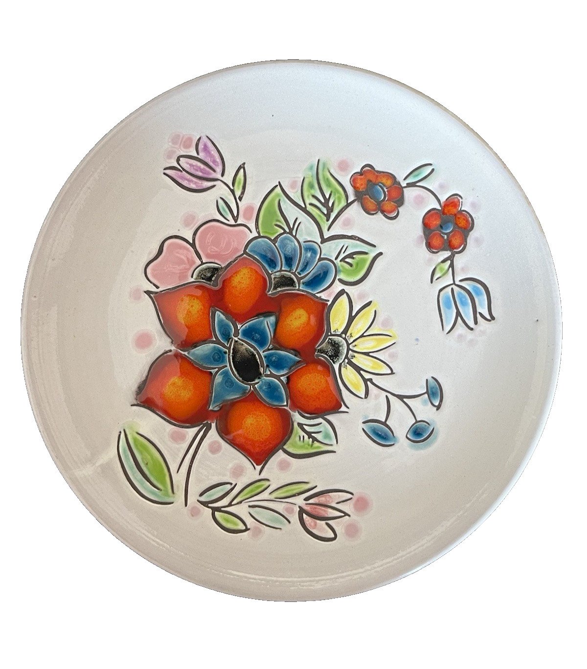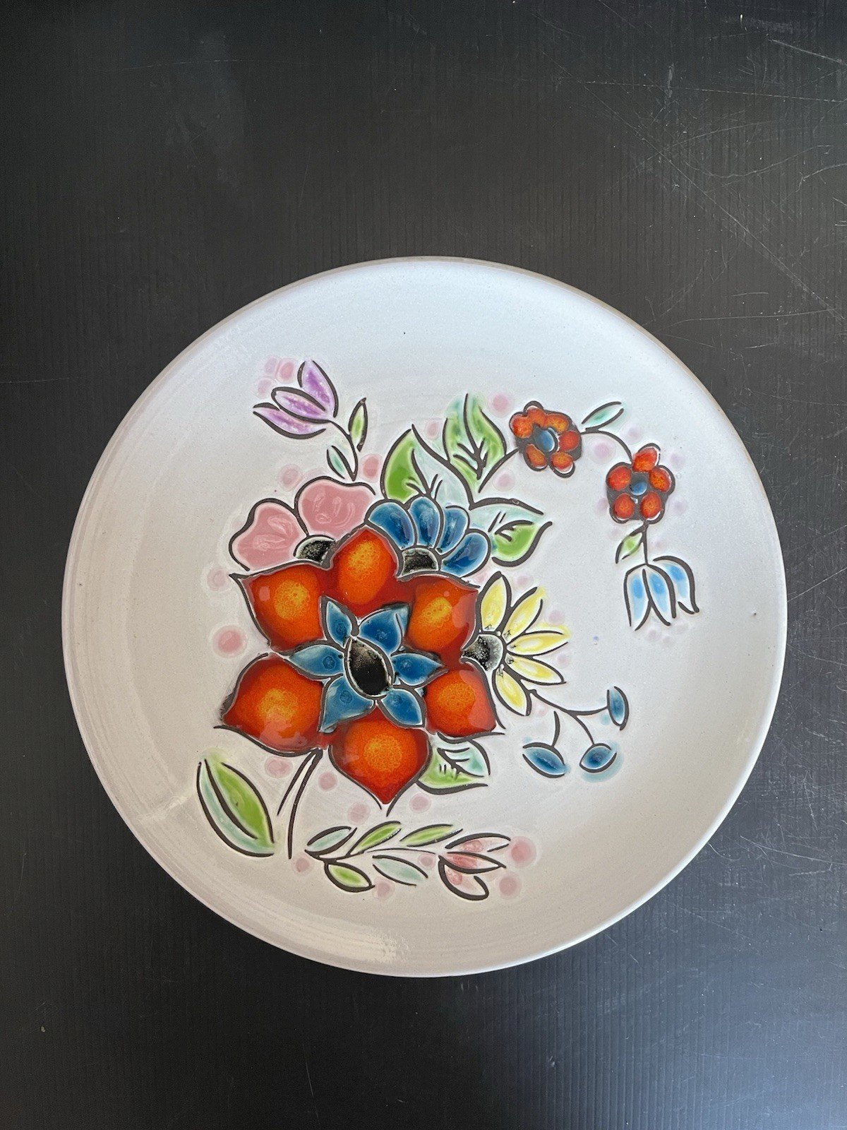 assiette Vallauris avec décor de fleurs vintage déco fait main piece unique