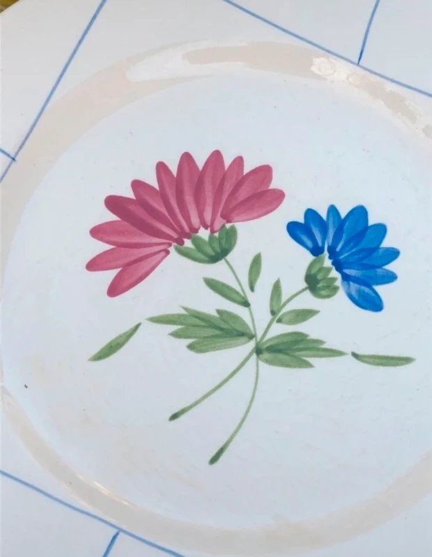 Assiette à dessert vintage en barbotine – Fleurs bordeaux