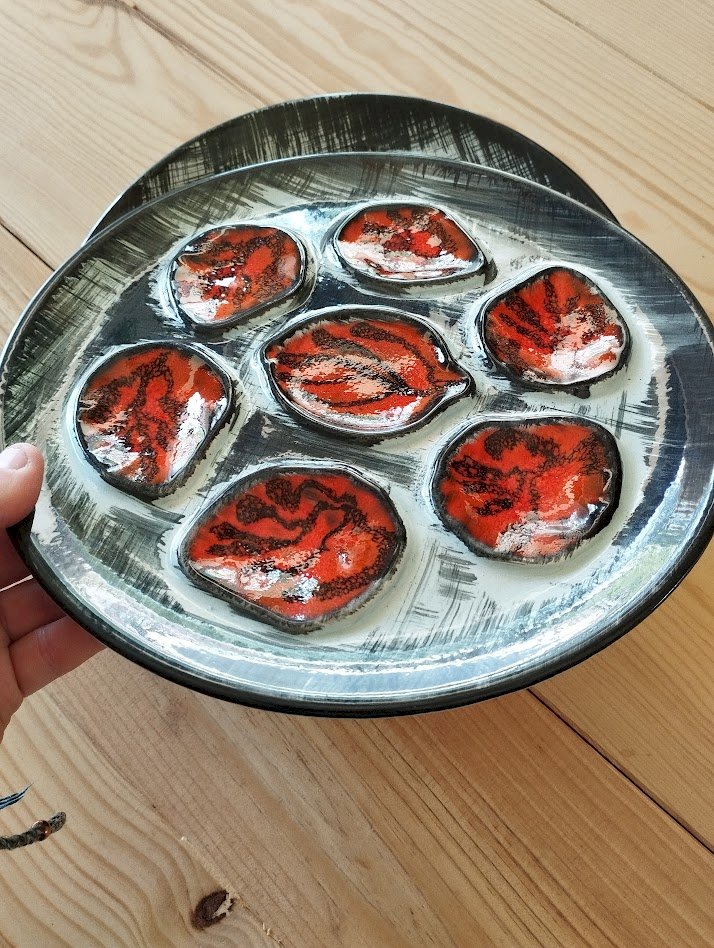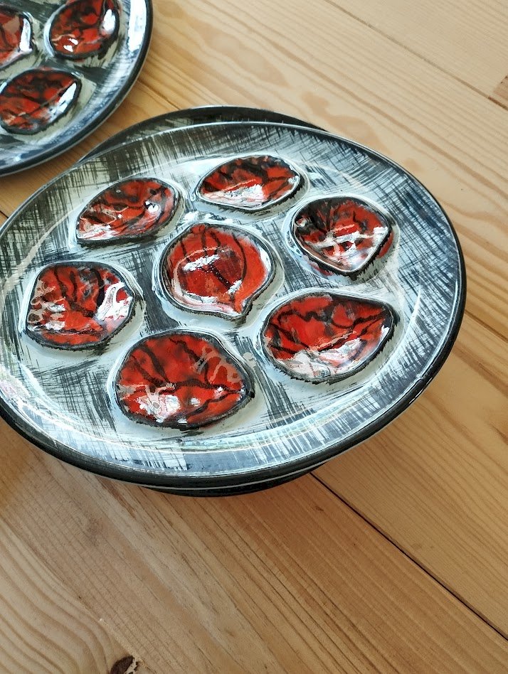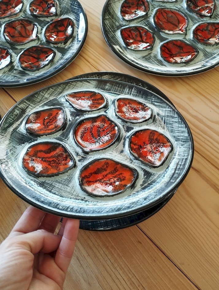 6 assiettes à Huitres/coquillages, Atelier d'Art du Revernay.