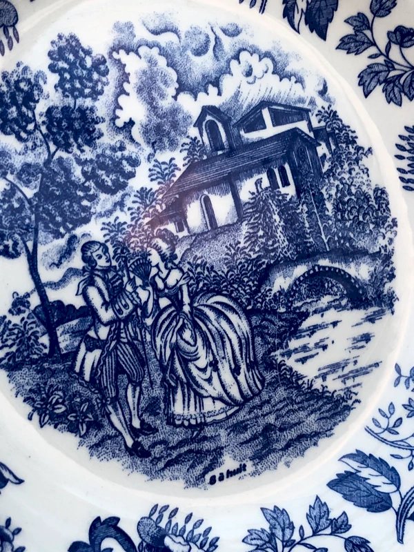 4 assiettes à dessert vintage porcelaine et faience dépareillée bleue blanche lot Isabella