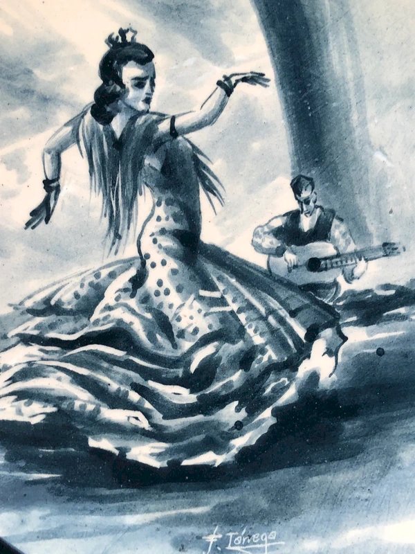 Assiettes décoratives thème personnages Espagnols Bleu/Blanc