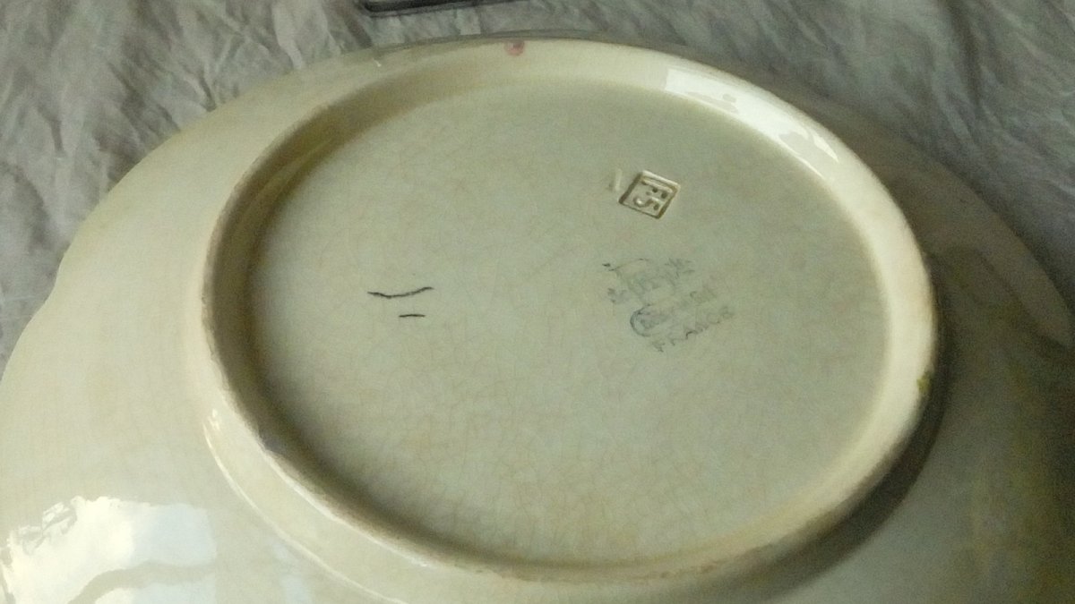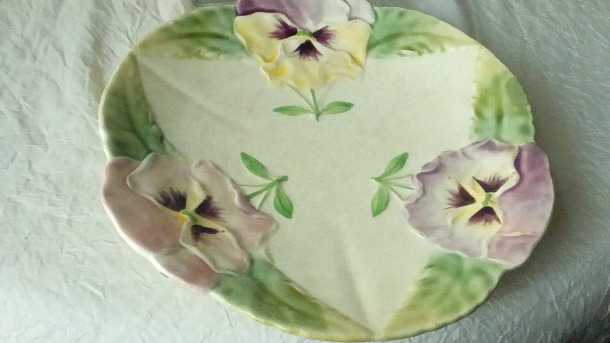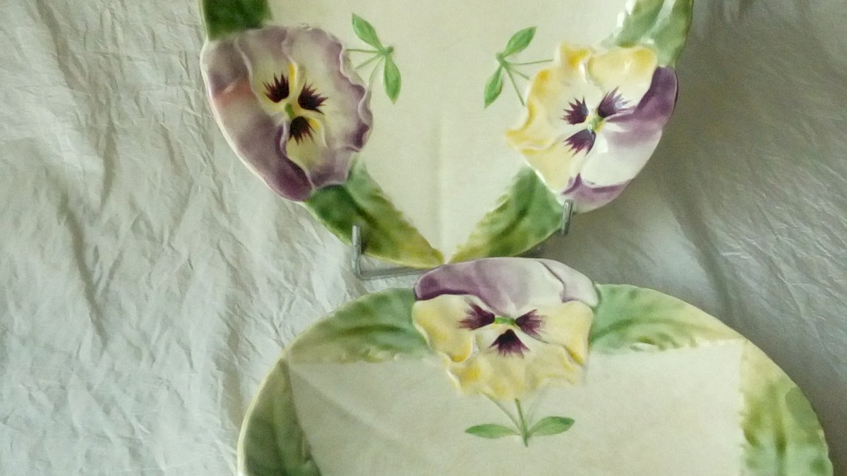 LOT DE 2 ASSIETTES EN BARBOTINE FAÏENCERIE CHOISY LE ROI FRANCE DECOR FLEURS DE PENSÉES DIAMETRE 20.50 cm FEL SUR 1 ASSIETTE ET EGRENURES VISIBLE SUR LES PHOTOS Pays d'origine:France
