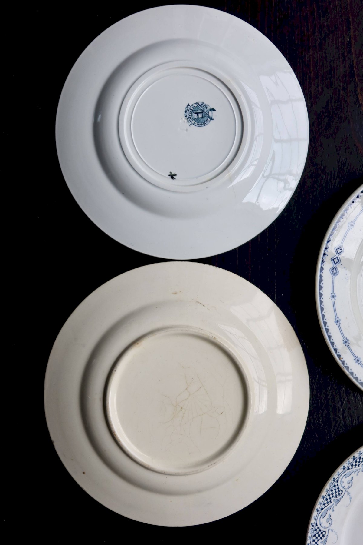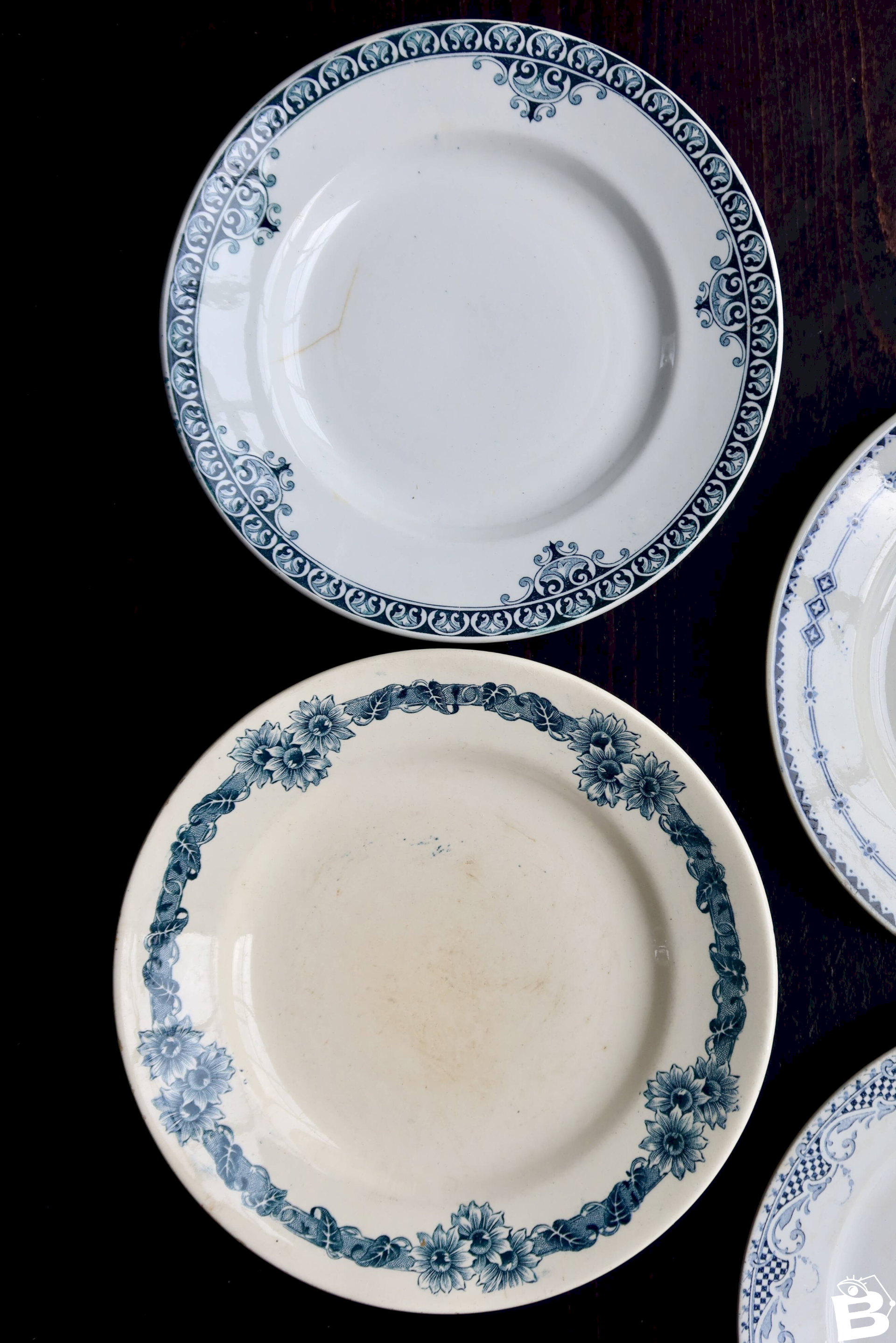 Assiettes plates vintage dépareillées en terre de fer bleue Céramique