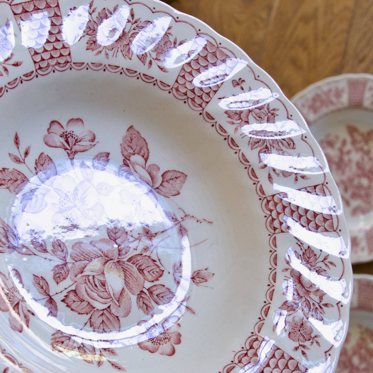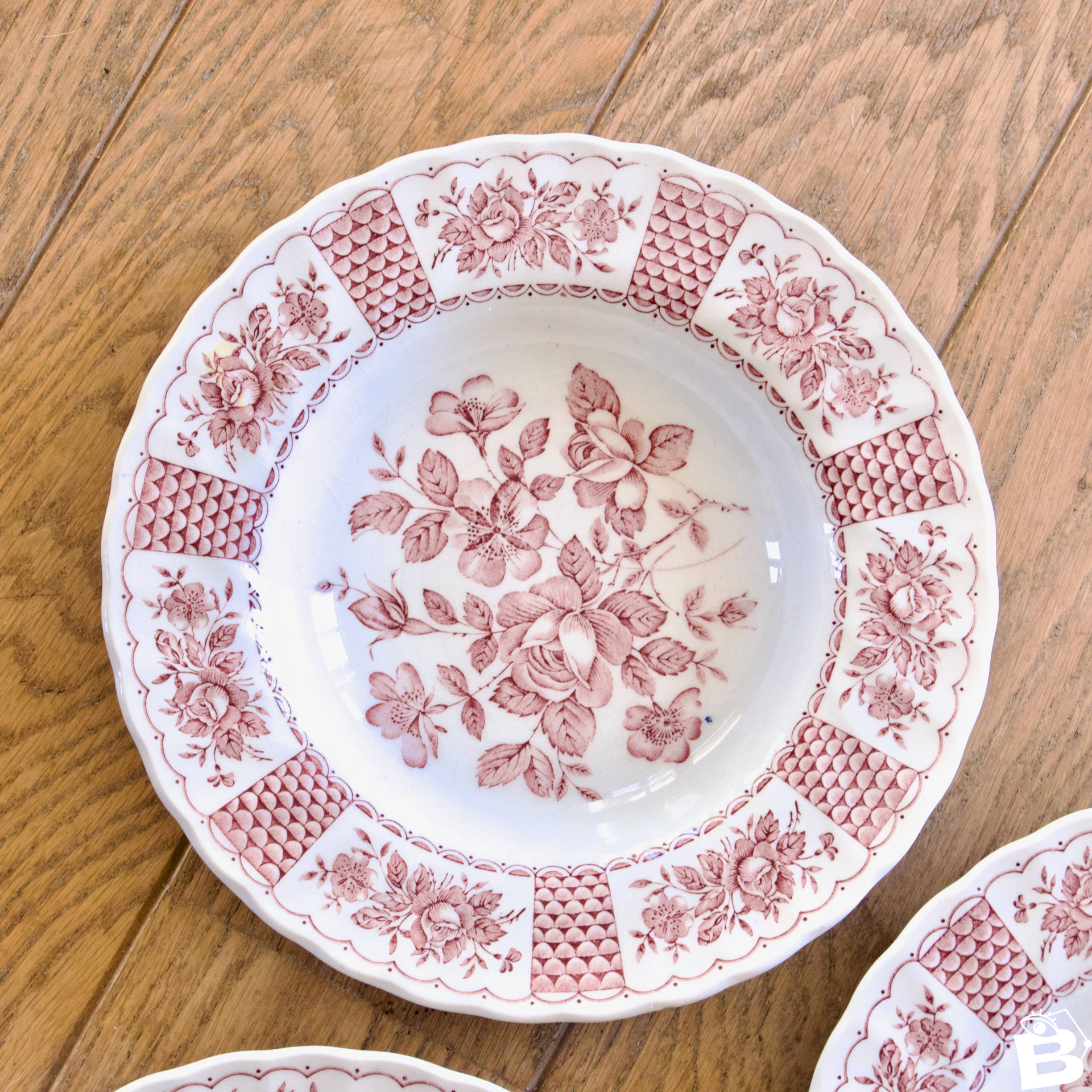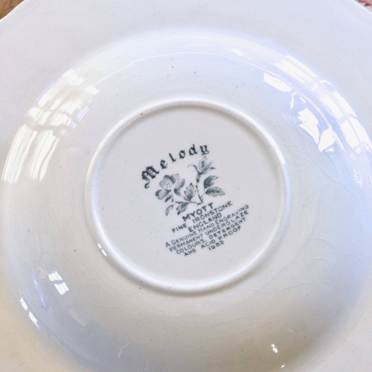 Lot de trois assiettes vintage de 1982, signées Myott England, terre de fer anglaise de couleur rose, collection “Melody”.Magnifique décor floral de roses.Marli en relief cannelé.Elles sont en très bon état, belle brillance.Assiettes creuses.? 23 cm.✨ Envoi très soigné.✨ Nous avons d'autres annonces en ligne, n'hésitez pas à jeter un coup d'oeil !02/25.