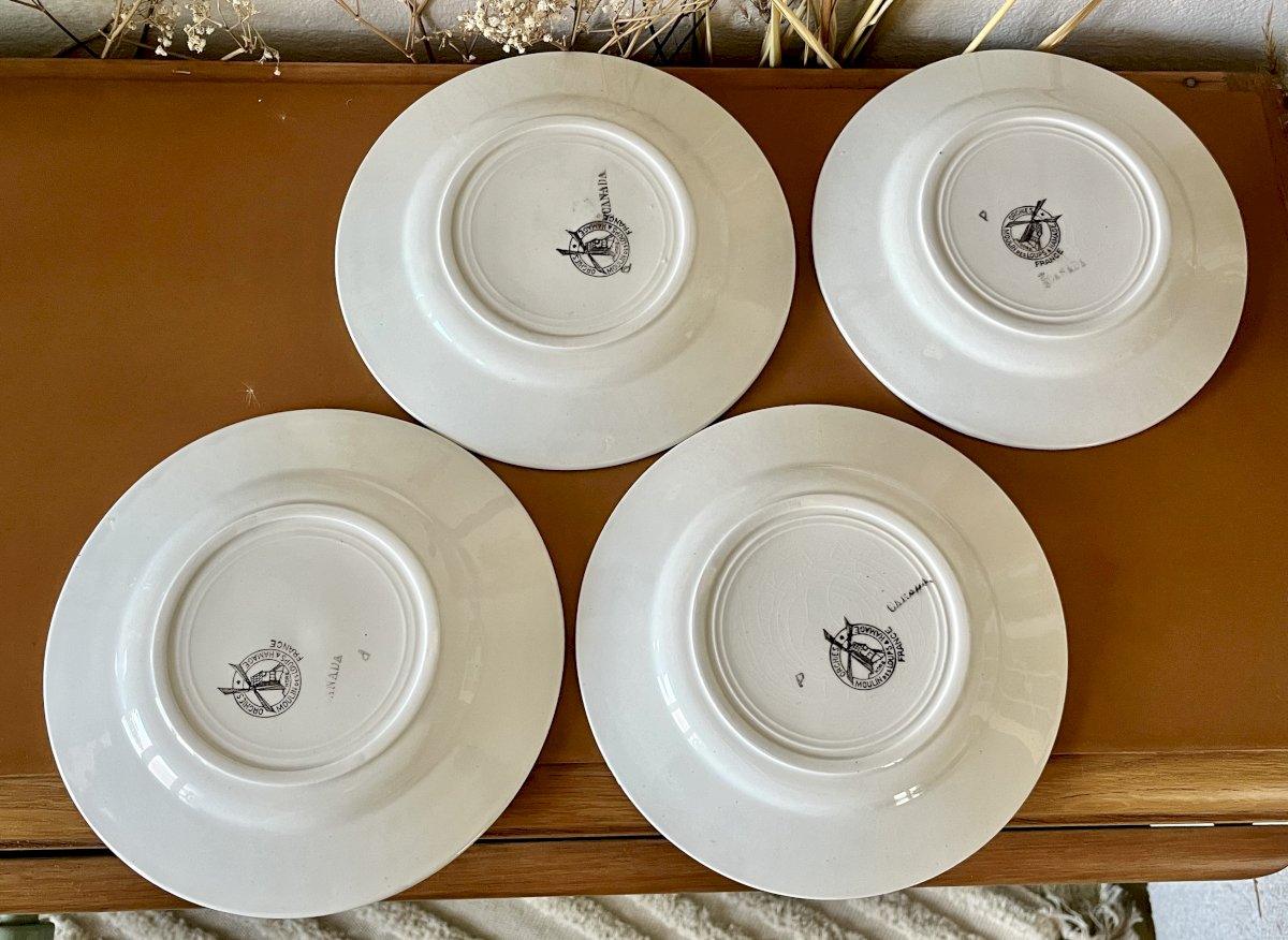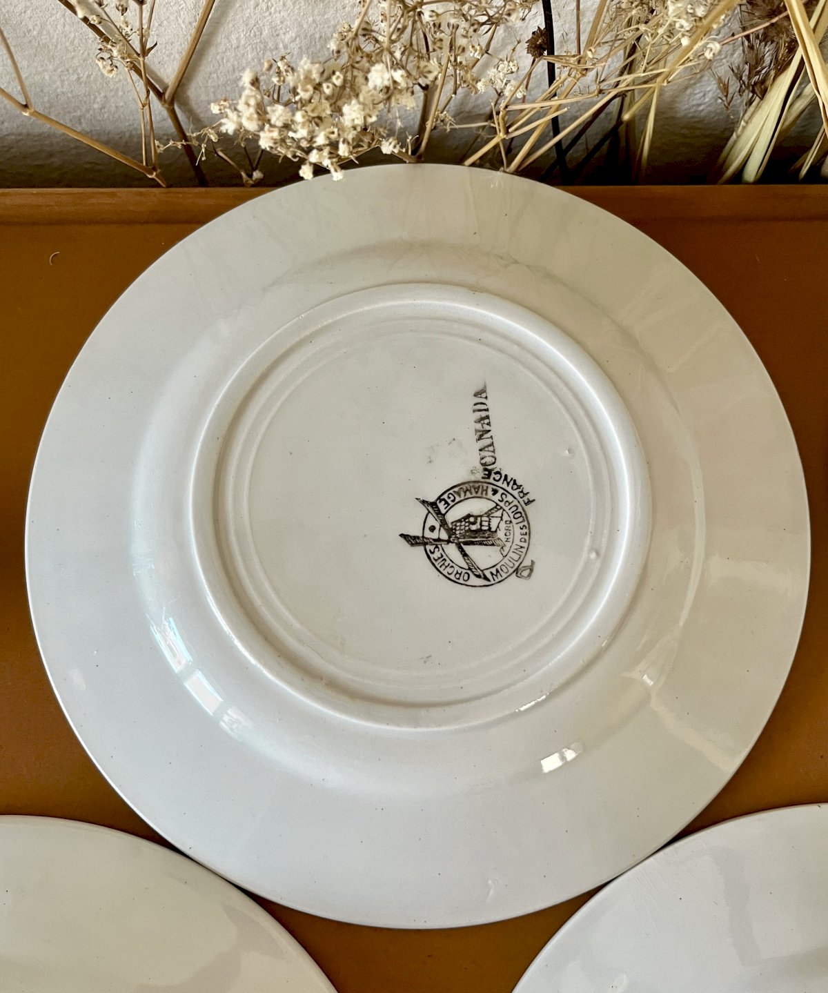 Authenticité - Lot n° 1 - 4 assiettes à dessert Canada - Moulin des Loups - Hamage - Orchies