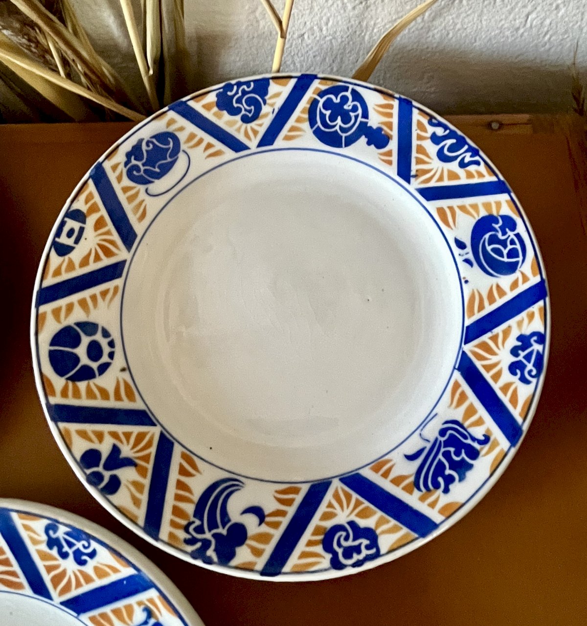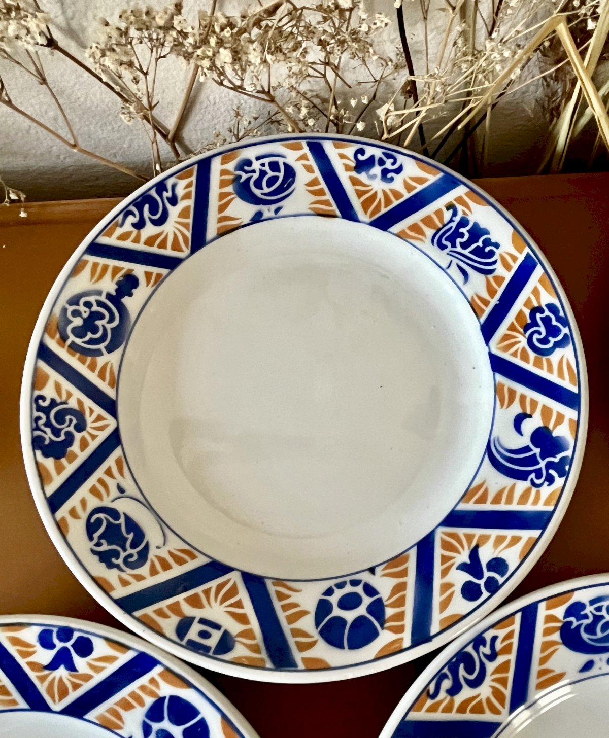 Authenticité - 4 assiettes plates/semi-creuses Losanges bleues - Lamandinoise - Saint Amand
