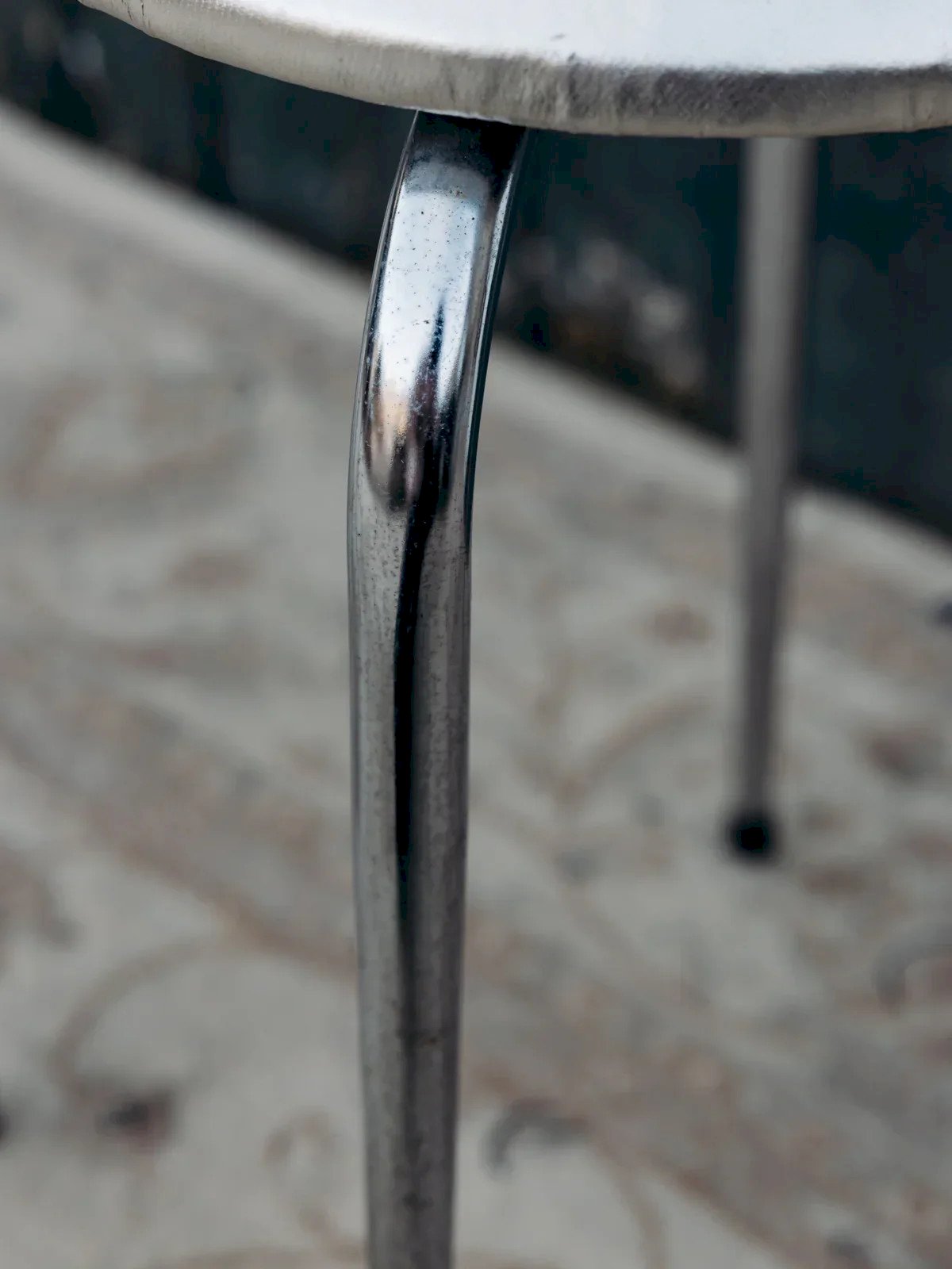 Adoptez ce tabouret au piètement tubulaire incurvé et à l'assise en cuir argenté, une pièce qui marie métal et cuir pour un look contemporain et épuré. Sa petite assise et sa hauteur contenue en font un siège d'appoint parfait pour un coin bar bas, une coiffeuse ou une table d'appoint, tandis que les embouts noirs protègent les sols et affinent la silhouette. Léger et stable, il apporte une touche sobre et raffinée à une ambiance urbaine ou minimaliste. Hauteur : 45 cm Diamètre de l'assise : 32 cm État:Occasion: Objet ayant été utilisé. Objet présentant quelques marques d'usure superficielle, ...Occasion: Objet ayant été utilisé. Objet présentant quelques marques d'usure superficielle, entièrement opérationnel et fonctionnant correctement. Il peut s'agir d'un modèle de démonstration ou d'un objet retourné en magasin après une courte période d'utilisation. les éventuelles imperfections. Couleur:Multicolore Hauteur:Contemporain Largeur:Métal, Cuir Longueur:Tabourets bas Marque:Debongout Type:Produit chiné Matière:Métal, Cuir Style:Contemporain Assemblage requis:Non Niveau dassemblage:Entièrement assemblé