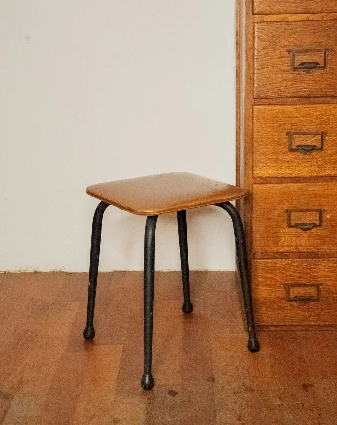 Adoptez ce petit tabouret des années 50, au charme discret et à la silhouette compacte. Ses pieds en métal noir lui apportent une élégance graphique tandis que l'assise en similicuir marron propose une assise chaleureuse, résistante et facile d'entretien. Idéal comme siège d'appoint, repose-pieds ou chevet dans un intérieur aux lignes sobres, il s'intègre parfaitement aux petits espaces, facile à déplacer; ses patins protègent les sols et assurent une stabilité fiable. Longueur : 28,5 cm Largeur : 28,5 cm Hauteur : 37,5 cm État:Occasion: Objet ayant été utilisé. Objet présentant quelques marques d'usure superficielle, ...Occasion: Objet ayant été utilisé. Objet présentant quelques marques d'usure superficielle, entièrement opérationnel et fonctionnant correctement. Il peut s'agir d'un modèle de démonstration ou d'un objet retourné en magasin après une courte période d'utilisation. les éventuelles imperfections. Couleur:Multicolore Hauteur:Contemporain Largeur:Métal, Skaï Longueur:Tabourets bas Marque:Debongout Type:Produit chiné Matière:Métal, Skaï Style:Contemporain Assemblage requis:Non Niveau dassemblage:Entièrement assemblé