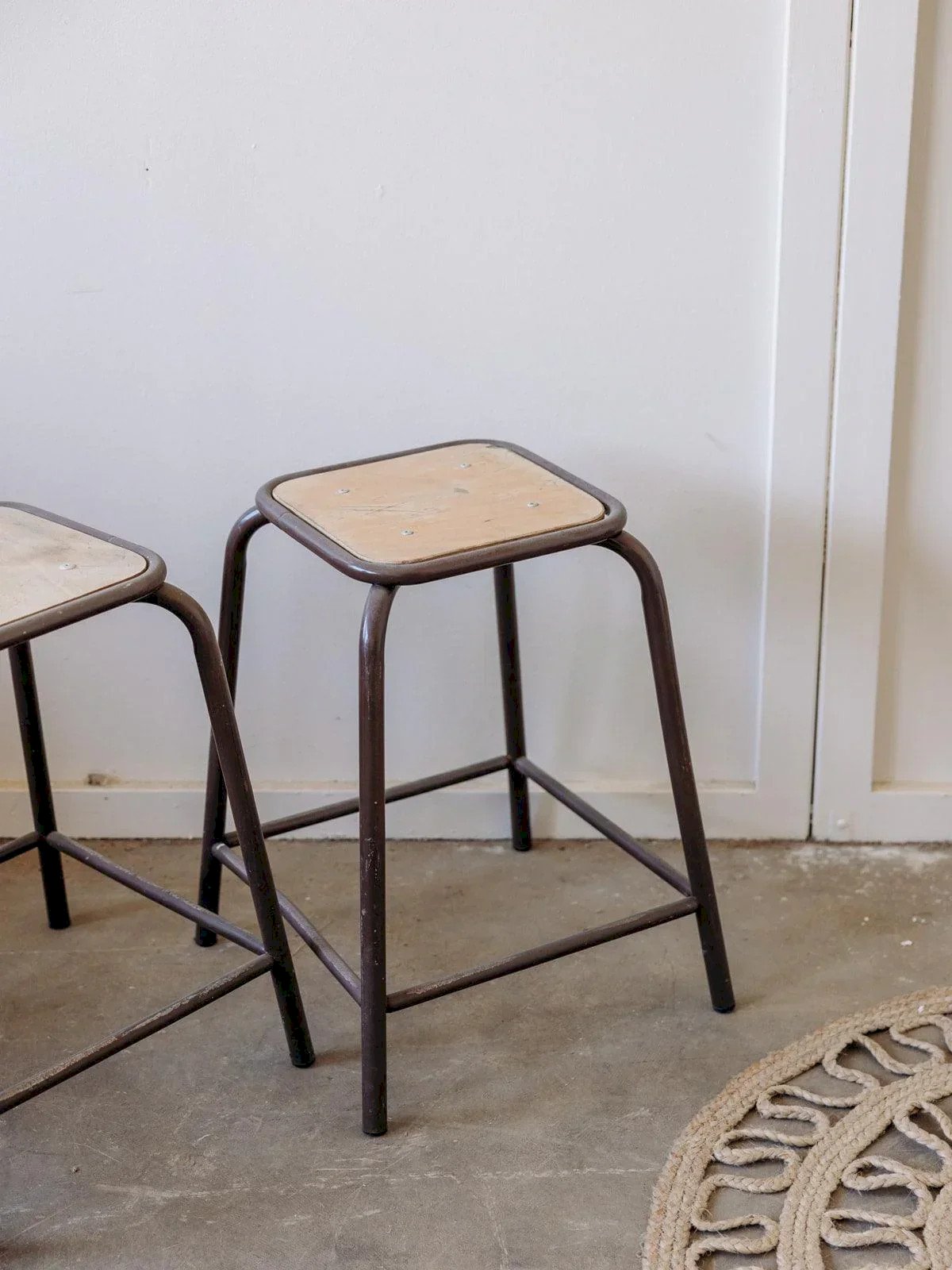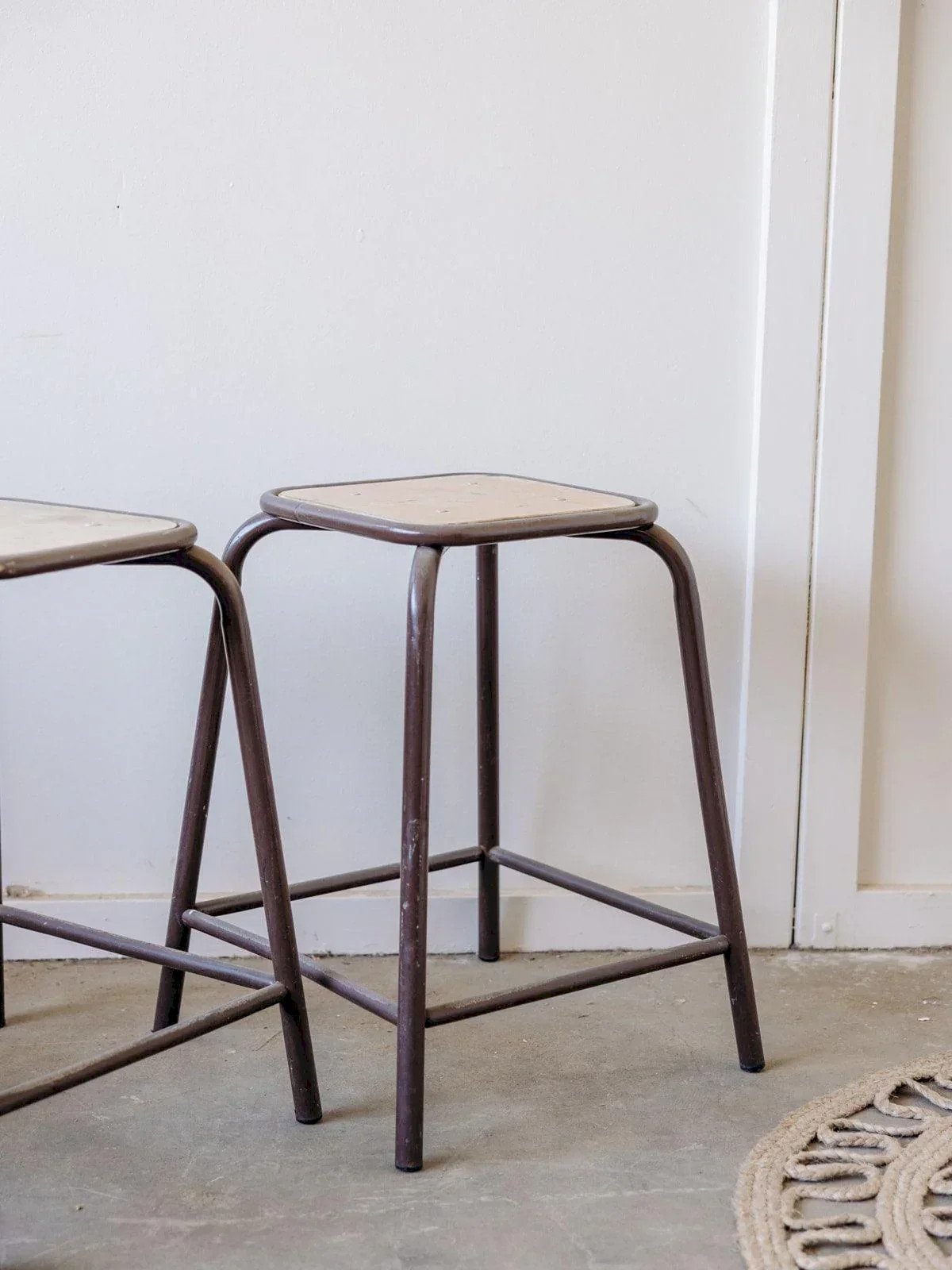 Ce tabouret industriel d'école marie l'authenticité du bois avec la robustesse des pieds métalliques marron. Son design simple et fonctionnel en fait une pièce polyvalente, parfaite pour ajouter une touche rétro-industrielle à votre intérieur. Idéal pour un coin bureau, une cuisine, ou comme siège d'appoint, ce tabouret allie style vintage et praticité avec élégance. Vendus à l'unité, deux sont disponibles. Longueur : 32 cm Largeur : 32 cm Hauteur : 58 cm Emprise au sol : 45 cm État:Occasion: Objet ayant été utilisé. Objet présentant quelques marques d'usure superficielle, ...Occasion: Objet ayant été utilisé. Objet présentant quelques marques d'usure superficielle, entièrement opérationnel et fonctionnant correctement. Il peut s'agir d'un modèle de démonstration ou d'un objet retourné en magasin après une courte période d'utilisation. les éventuelles imperfections. Couleur:Multicouleur Hauteur:Métal, Bois Largeur:Tabourets bas Marque:Debongout Type:Produit chiné Matériau:Métal, Bois Style:Contemporain