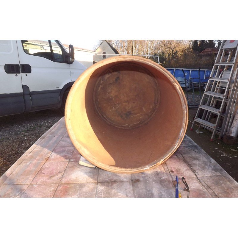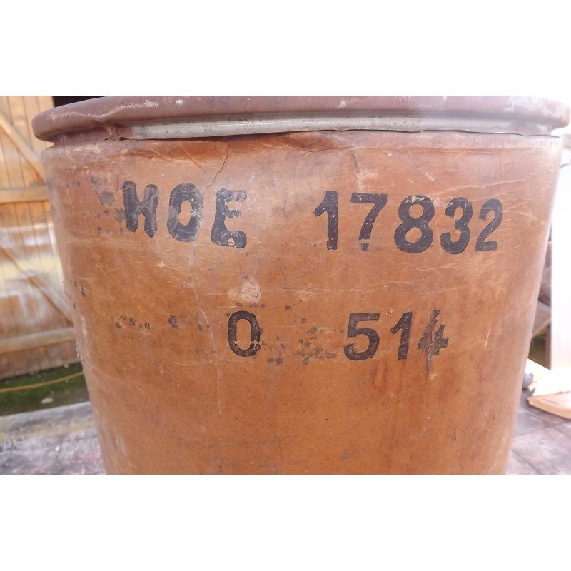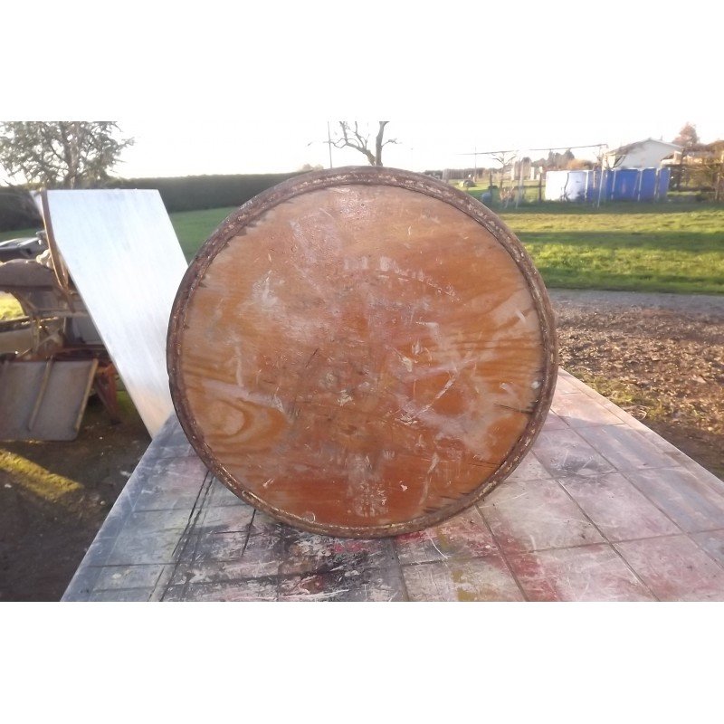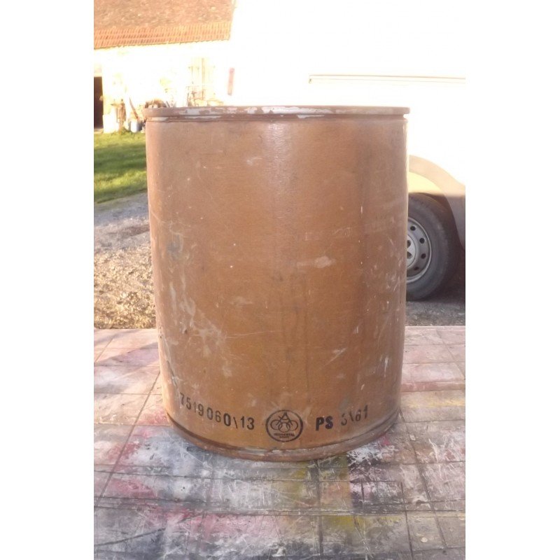 Bac Industriel Carton , Fond  Bois et Cerclage Fer , haut : 50 cm , diam : 40 cm , bon ètat dans l'ensemble , quelques bosses et petits trous , d'autres photos sur votre messagerie , visible à GARDONNE (24) envoi en mondial relay de : 20 € ou colissimo : 26,50 €Â