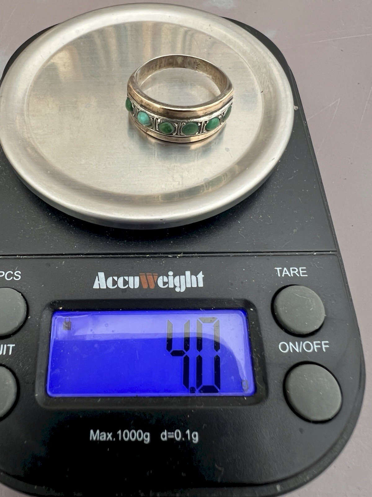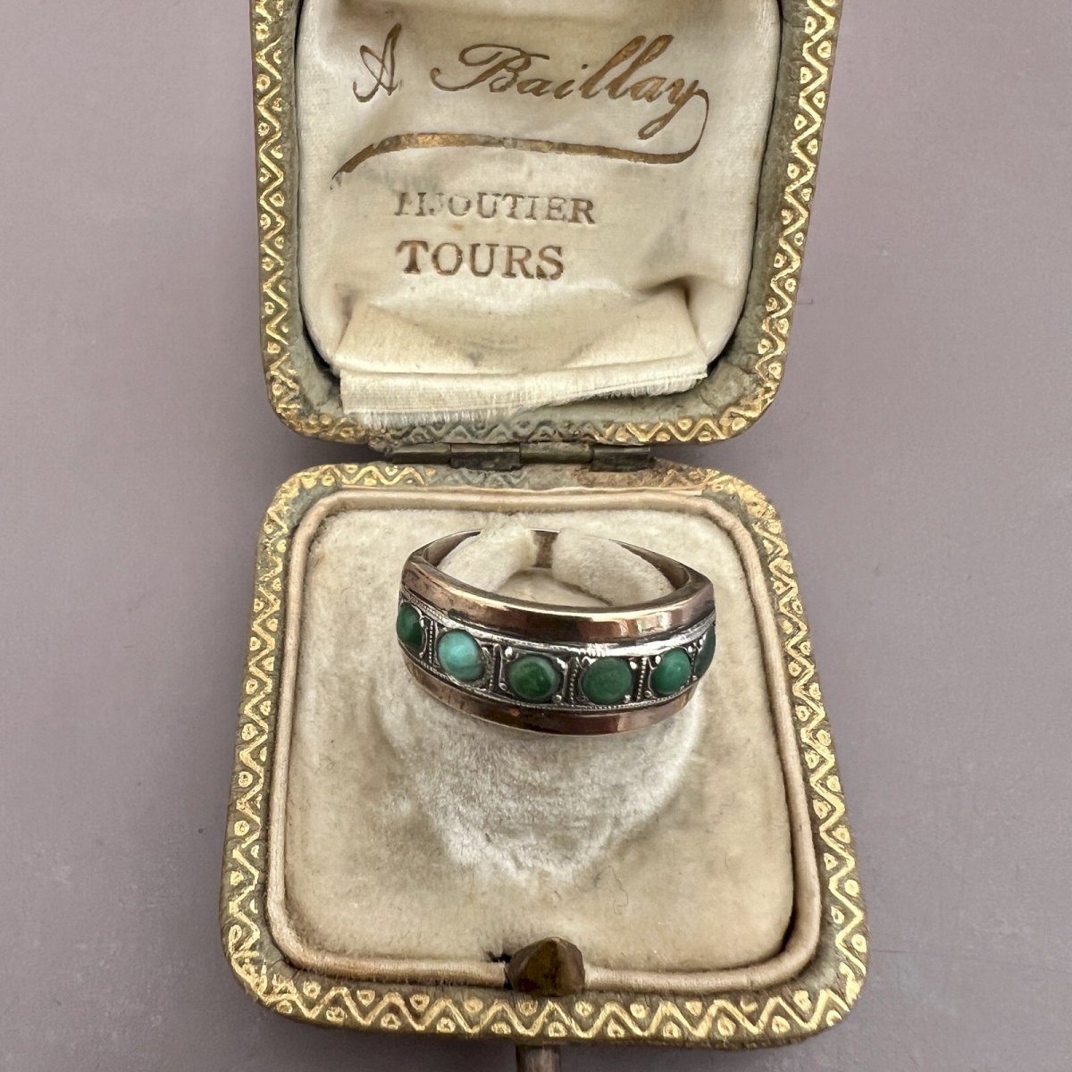 Bague bandeau vers 1900/ 1920 argent Vermeil Turquoises Vintage Ancien Poinçon
