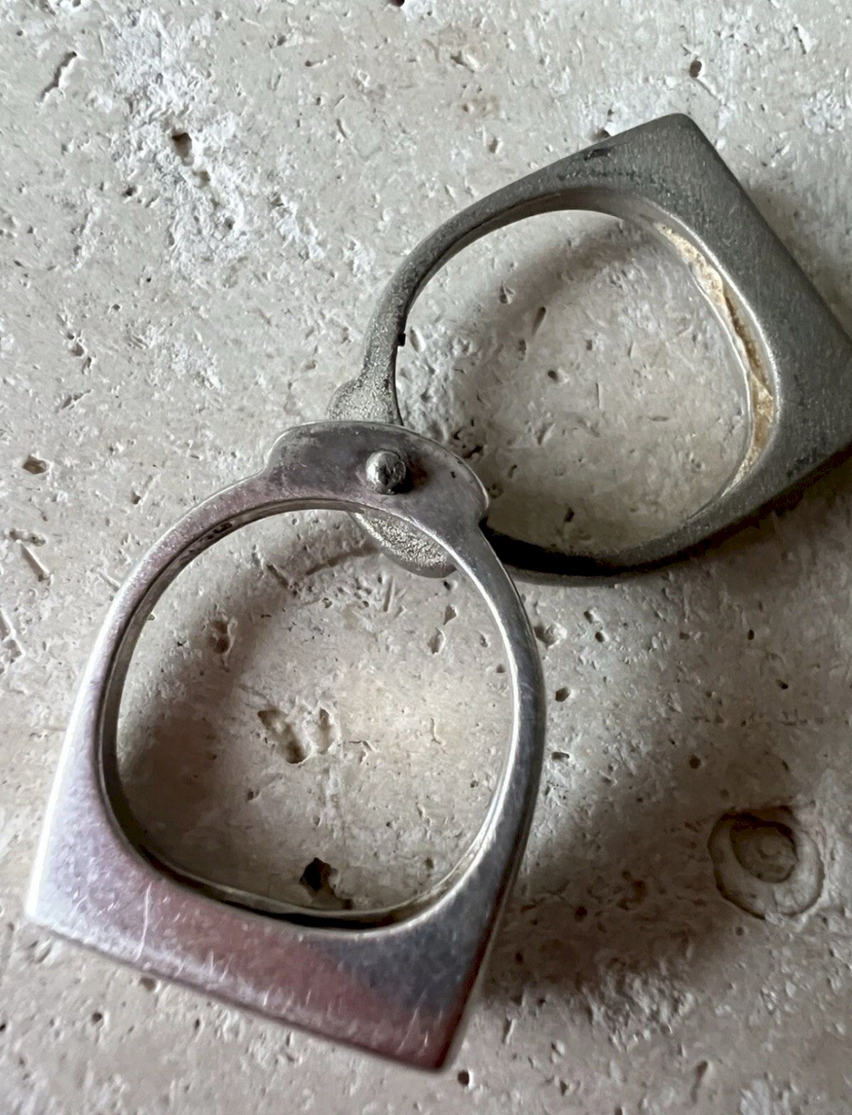 Bague Double Articulée Géométrique Design Contemporain Argent Massif Vintage