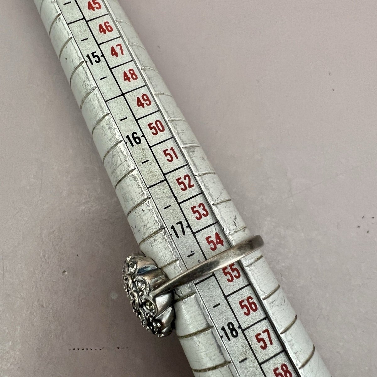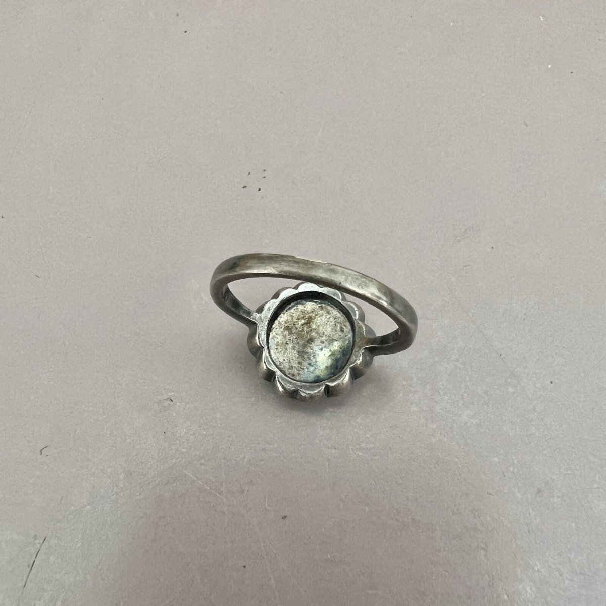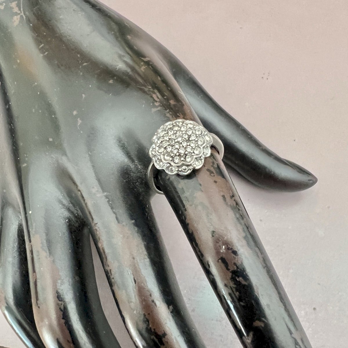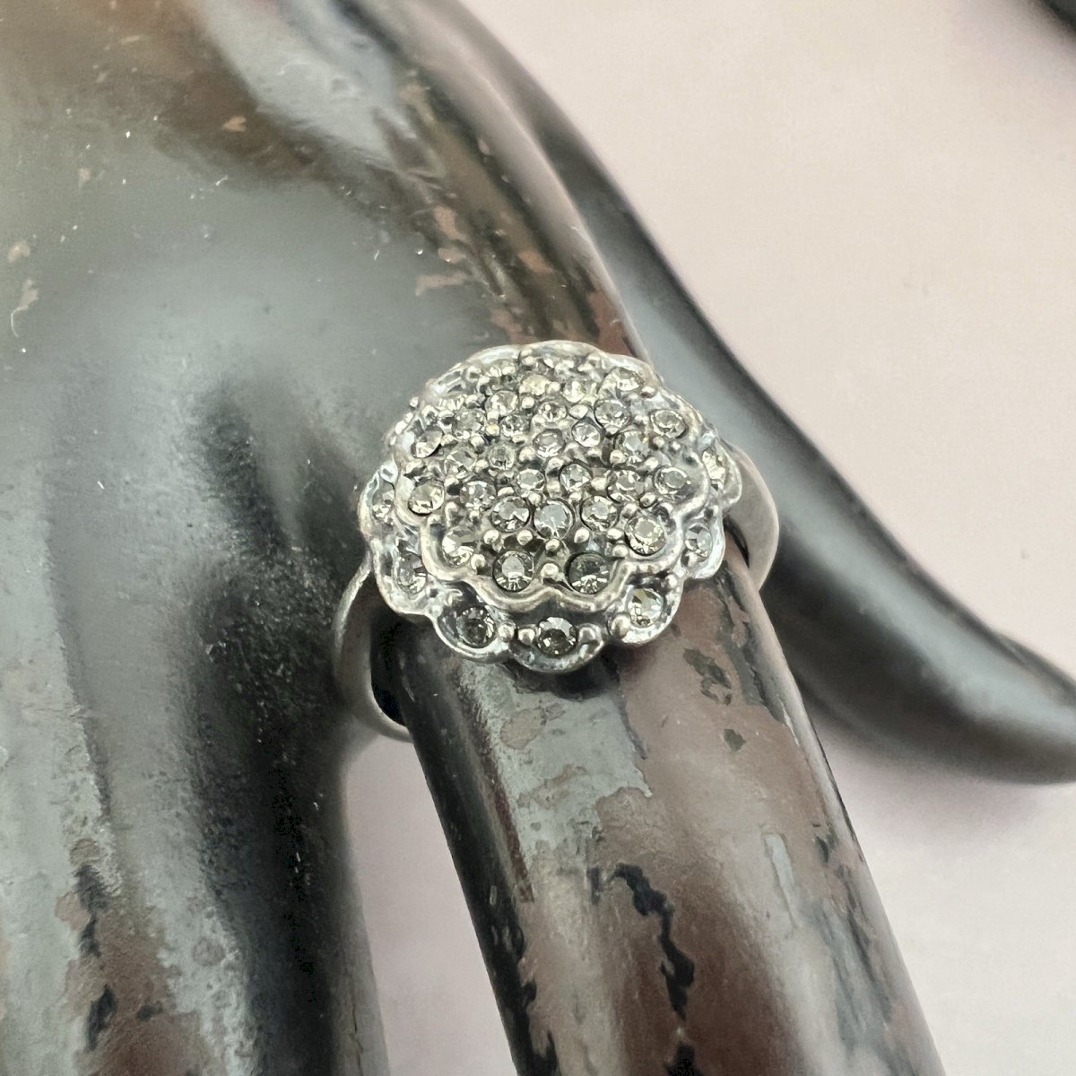 Bague Fleur, Argent- Massif Noirci- Cristal - Taille 54,5 Fr. Vintage, Style