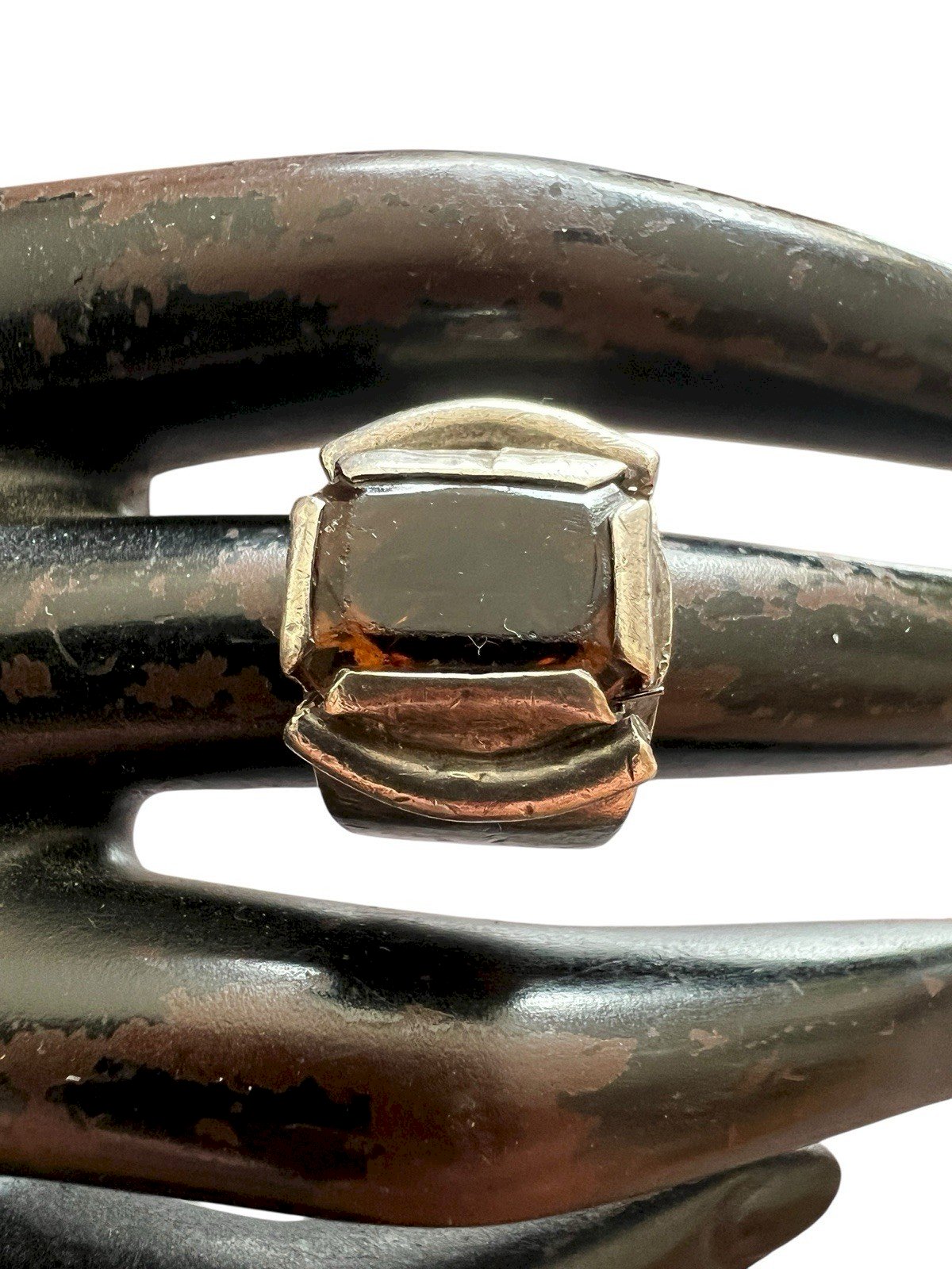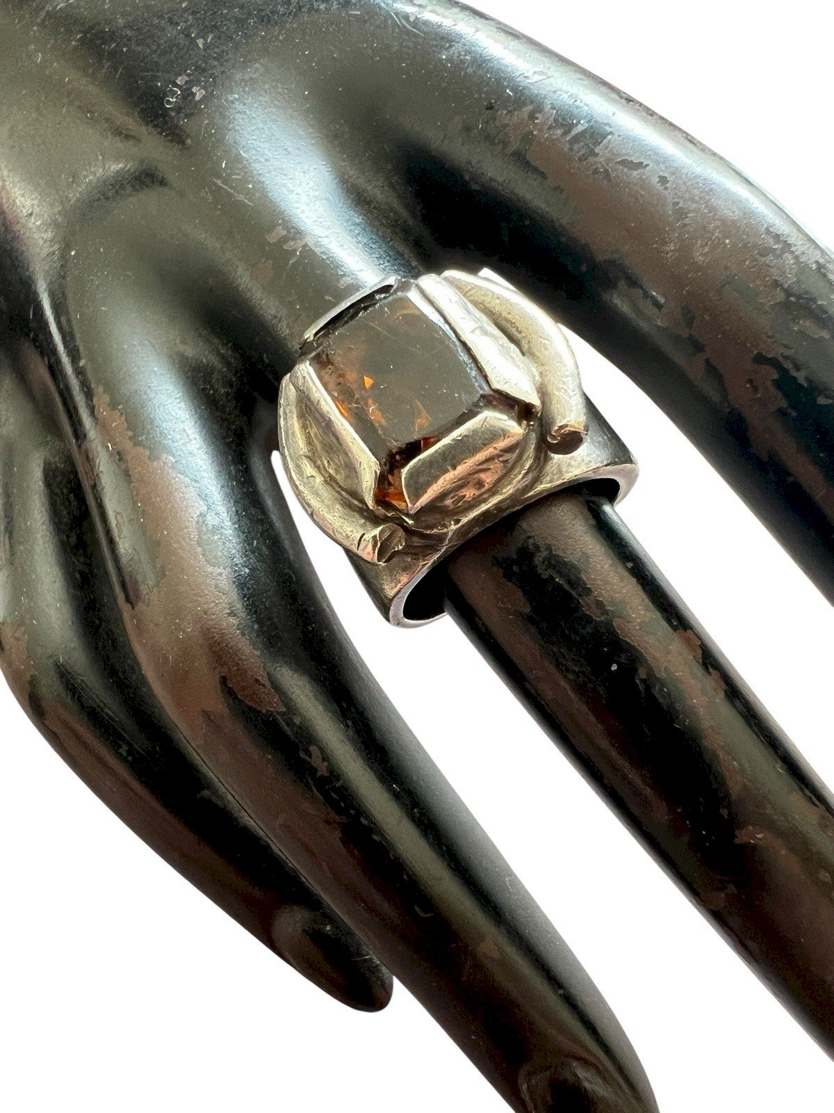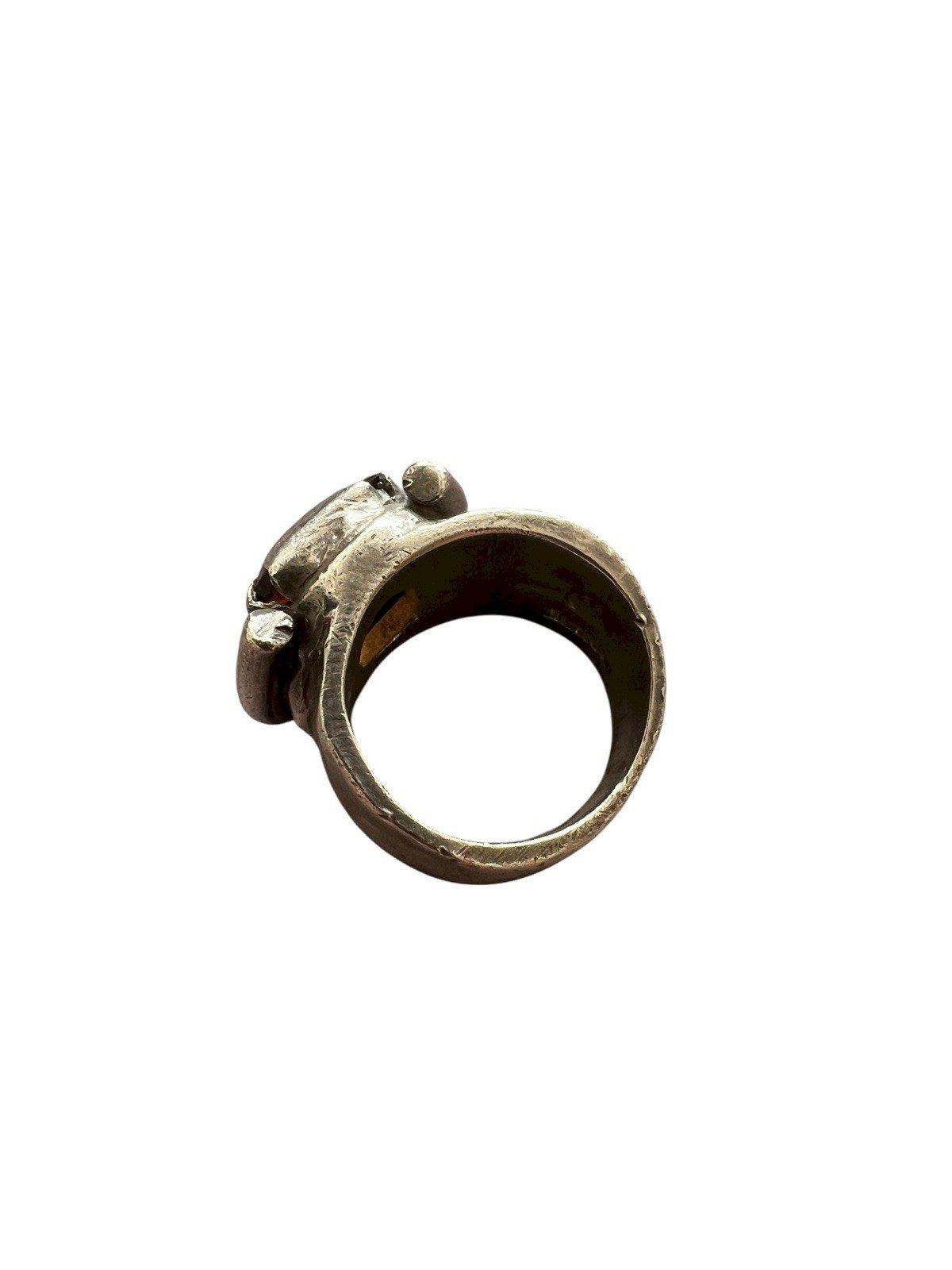 Bague Vintage Argent Massif Design Géométrique Solide Vers 1970 Poincon