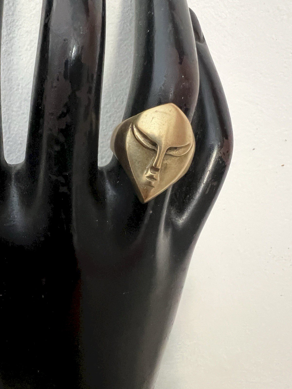 Bague vintage masque -Visage Bronze collection Unisex taille 51 FR Design