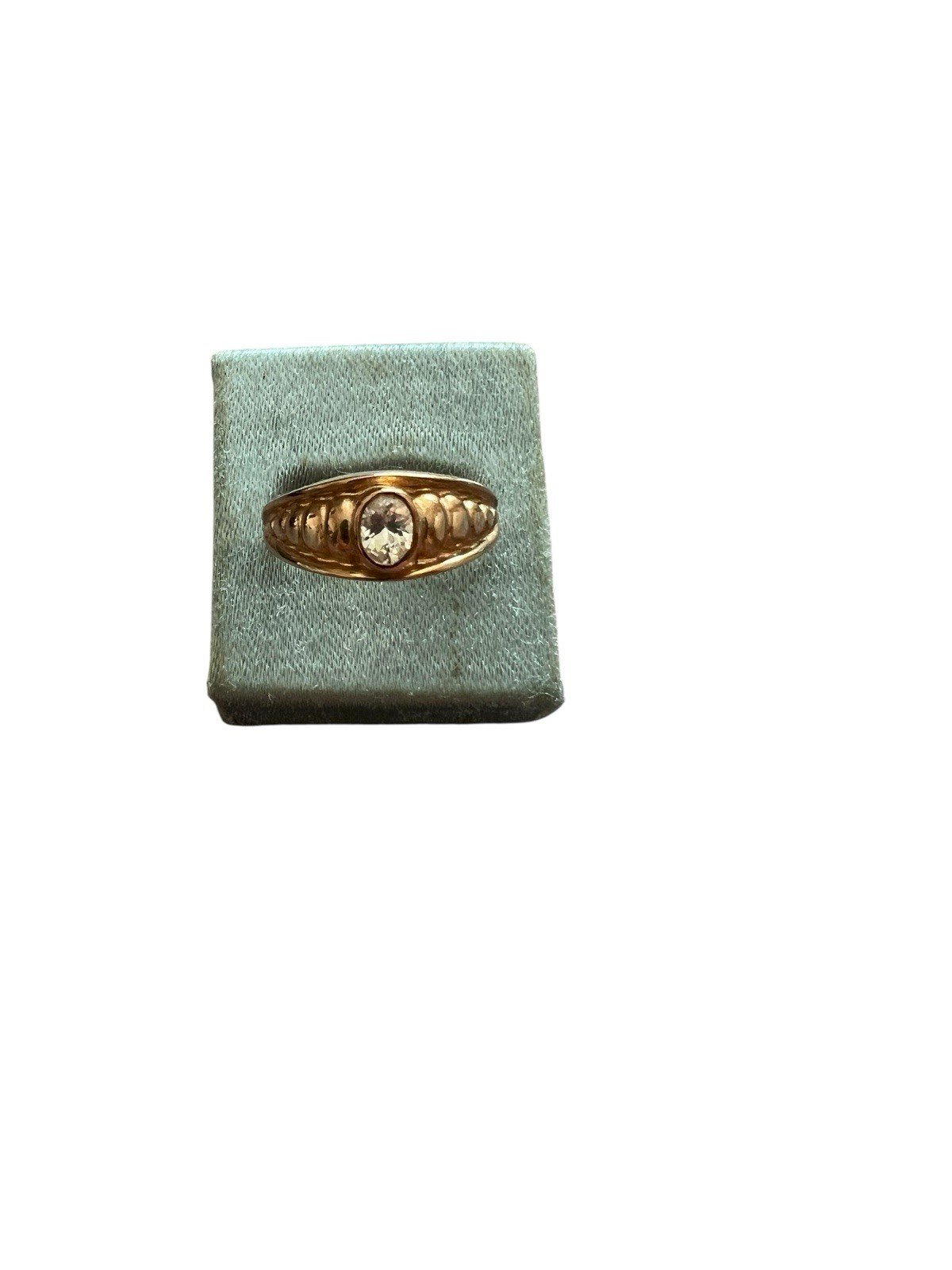Bague Vintage Style Art Déco Plaqué Or Taille 54 Fr Retro Élégant, Chic, Cocktail bague style Art Déco en plaqué or, marquée du poinçon 10 MO à l'intérieur et du poinçon du plaqué or à l’extérieur de l’anneau. Cette pièce vintage est sertie d'une pierre incolore étincelante. Elle est en très bon état avec une belle patine ancienne. Taille environ 54 FR, correspondant à un diamètre intérieur d'environ 17,3 mm. L'écrin de présentation n'est pas inclus. petite fissure au niveau de la soudure de l’anneau, un très léger, manque de matière qui n’entrave rien la solidité de la bague État:Occasion: Objet ayant été porté. ...Occasion: Objet ayant été porté. les éventuelles imperfections. Pierre dominante:Incolore Taille:54 Couleur dominante:Doré Matière:Pierre