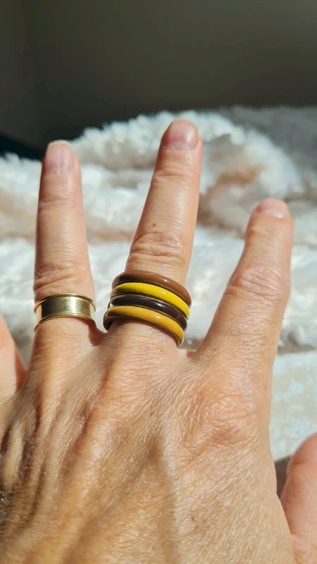 Bagues en laiton et émaillées moutarde à marron Verre/Métal