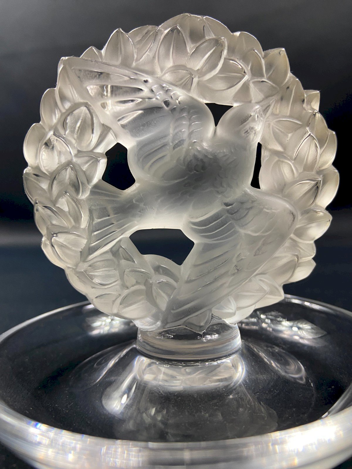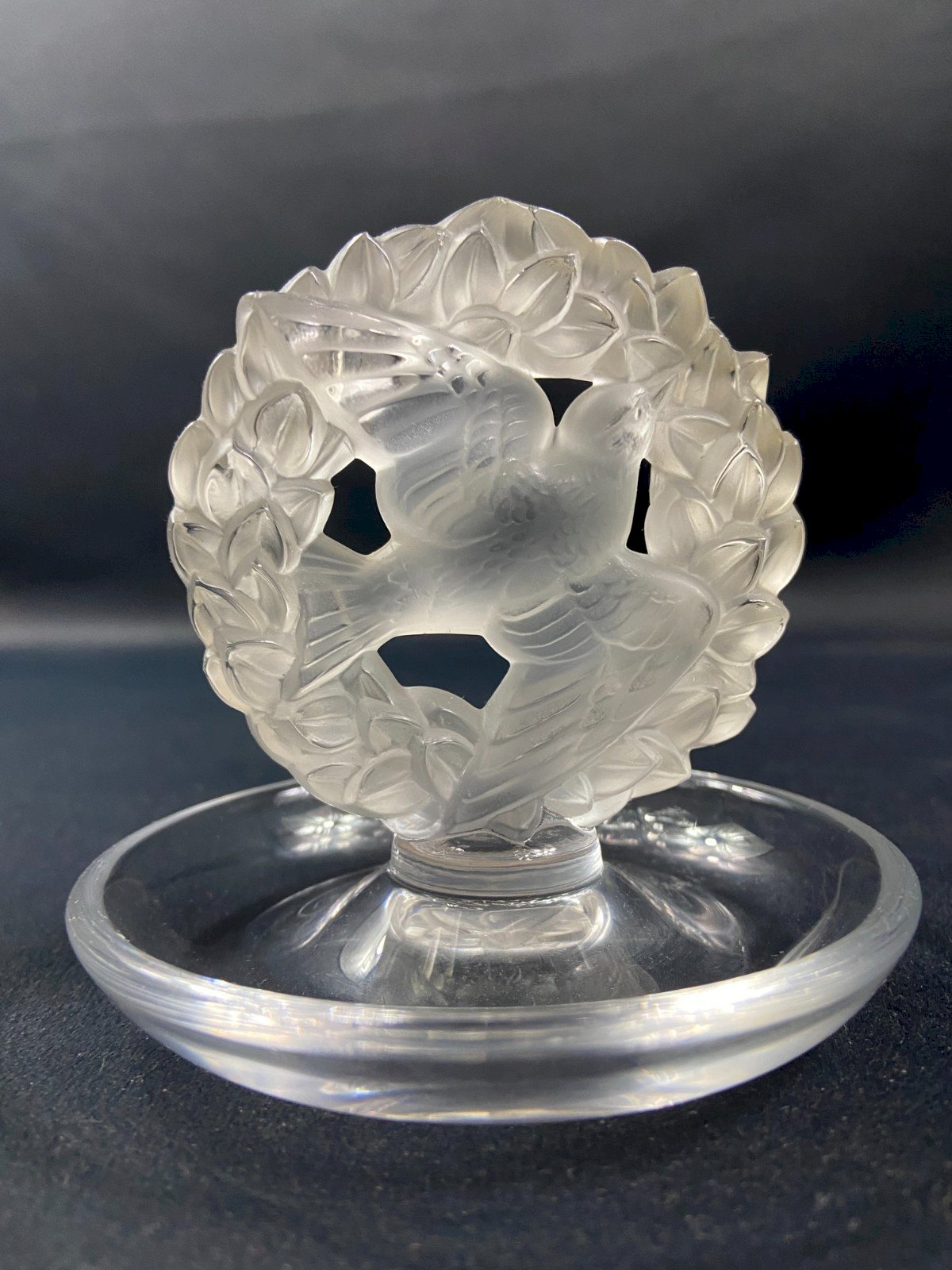 Baguier à la mésange et à la couronne de lauriers en cristal signé LALIQUE