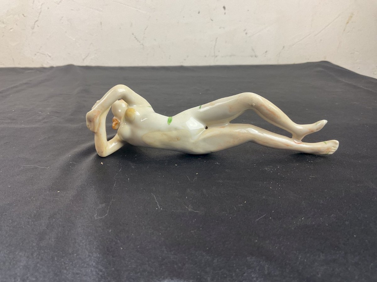 baigneuse en porcelaine Pin-up Sexy Allemande art nouveau -art déco  Longueur : 15,5 cm Pays de fabrication:Allemagne