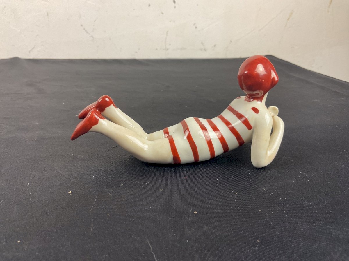 baigneuse en porcelaine Pin-up Sexy Allemande art nouveau -art déco  Manque sûrement son ombrelle  Longueur : 15,5 cm Pays de fabrication:Allemagne